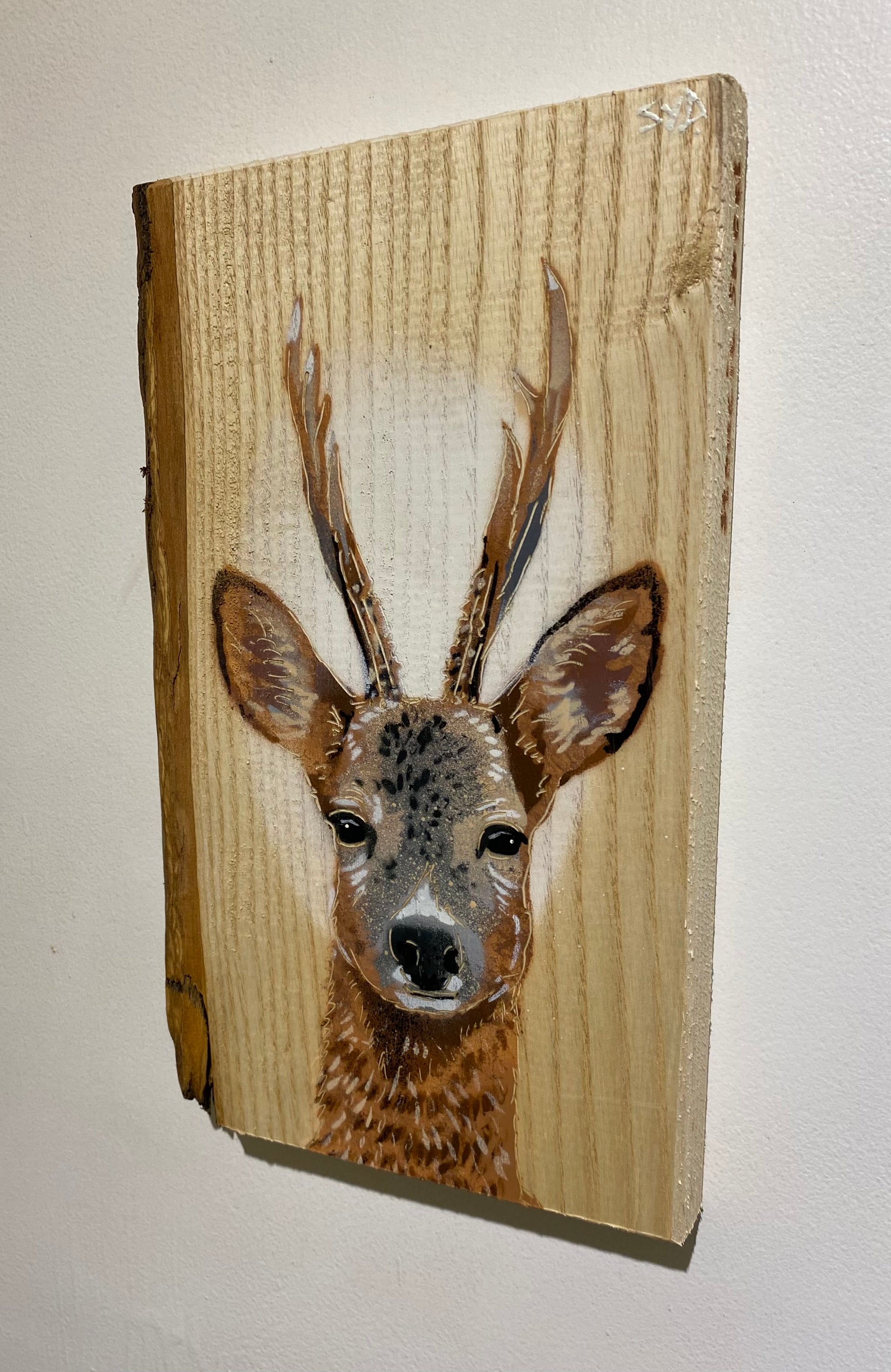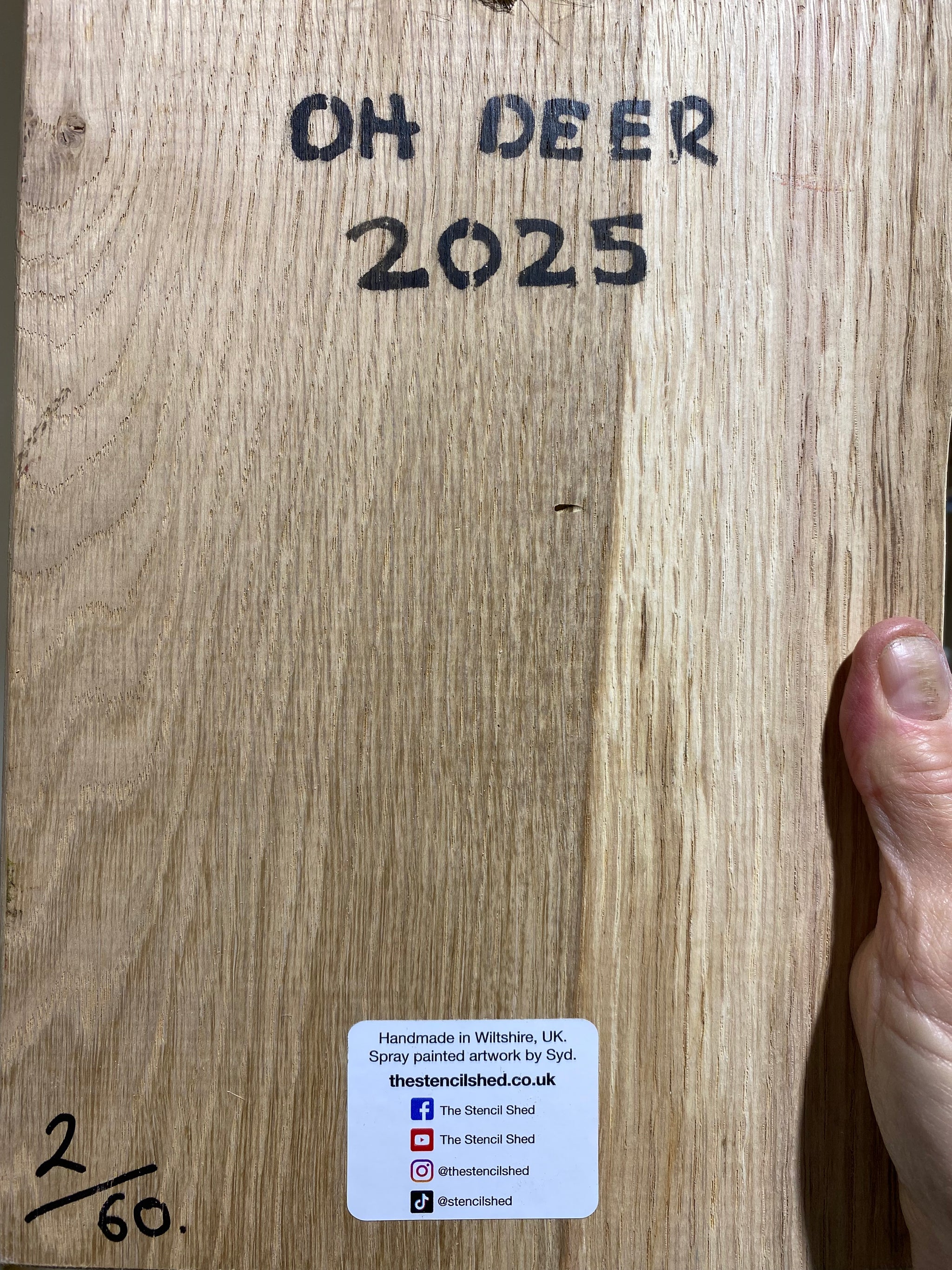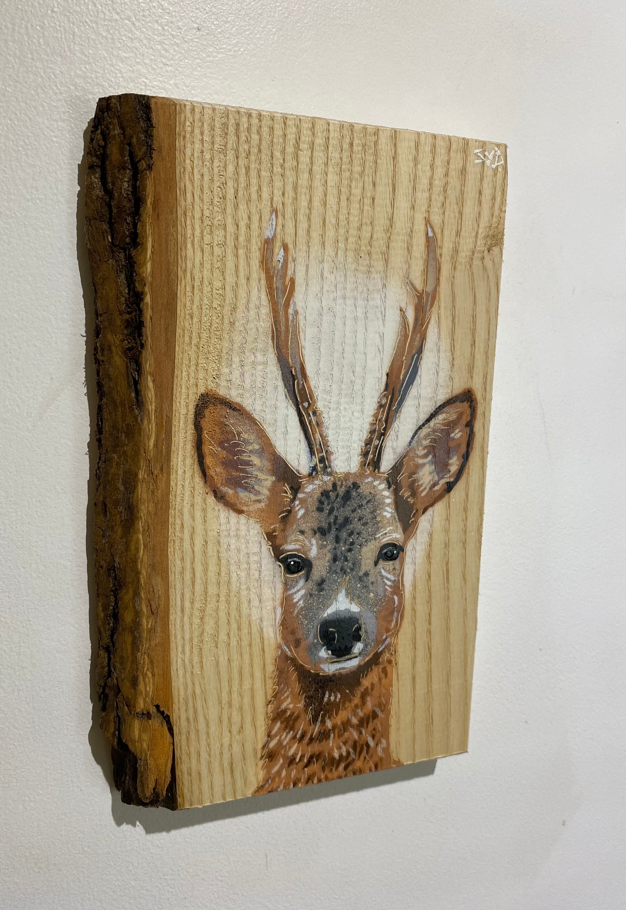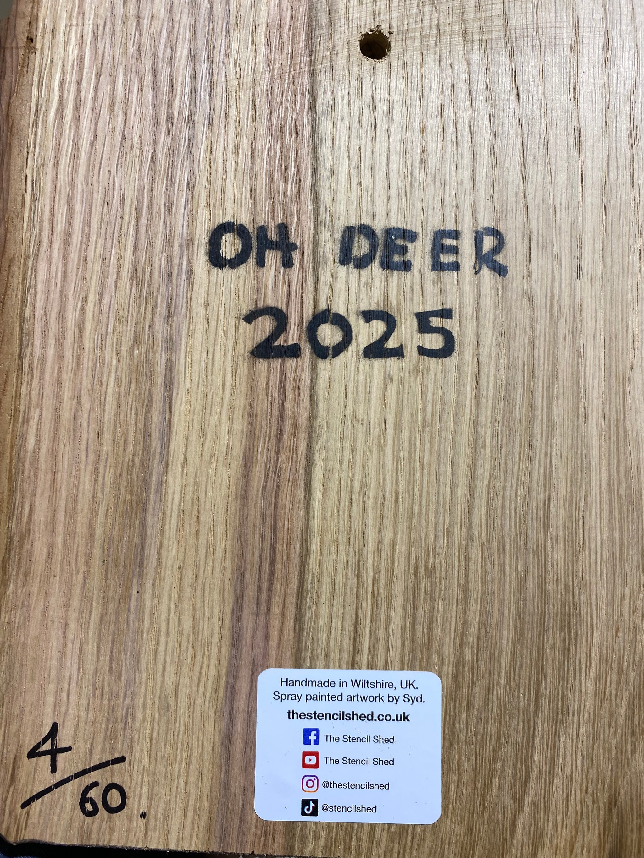 Oh Deer New Roe Deer artwork for 2025 on barky Ash size 18 x 30cm - Number 3 in the new edition
