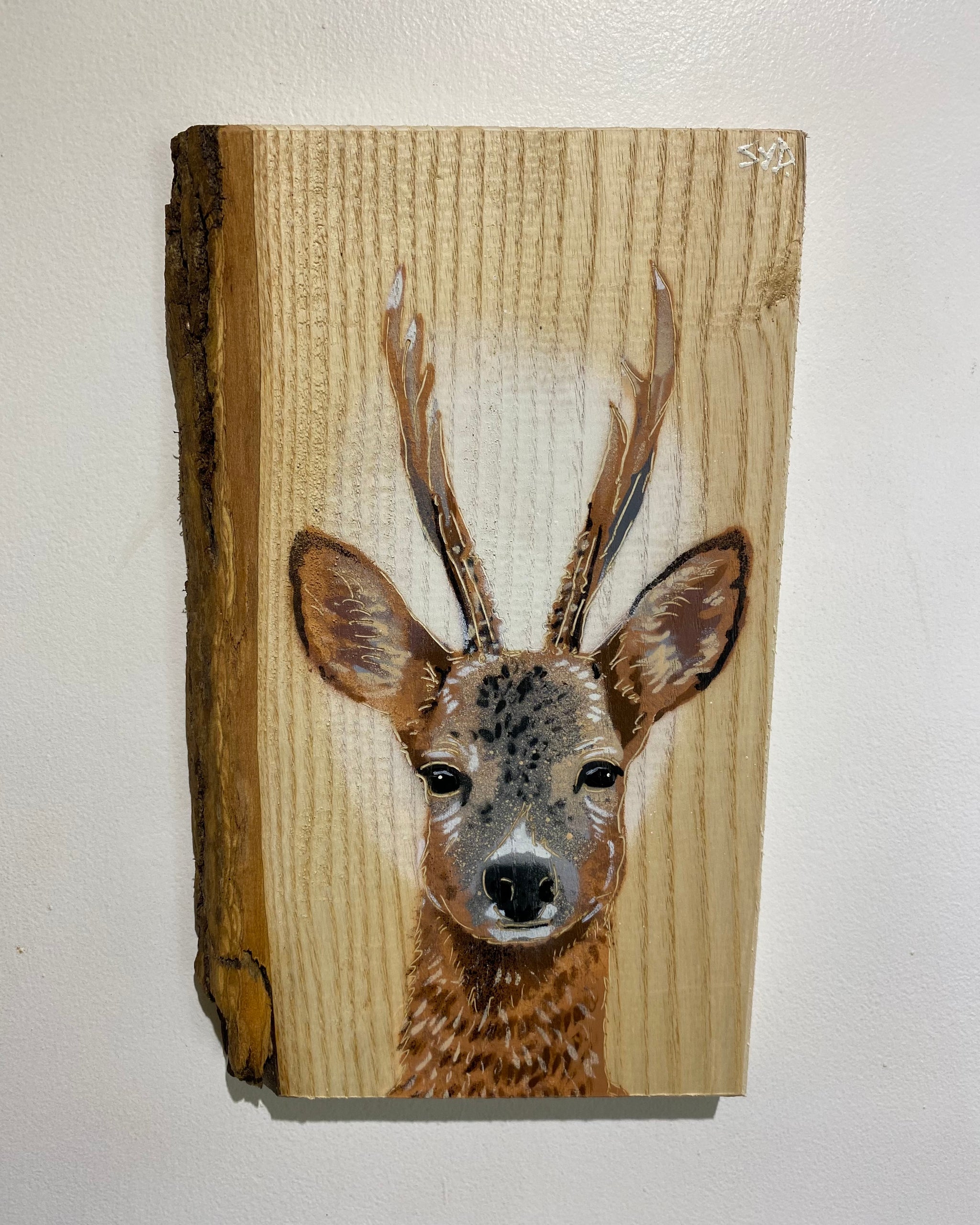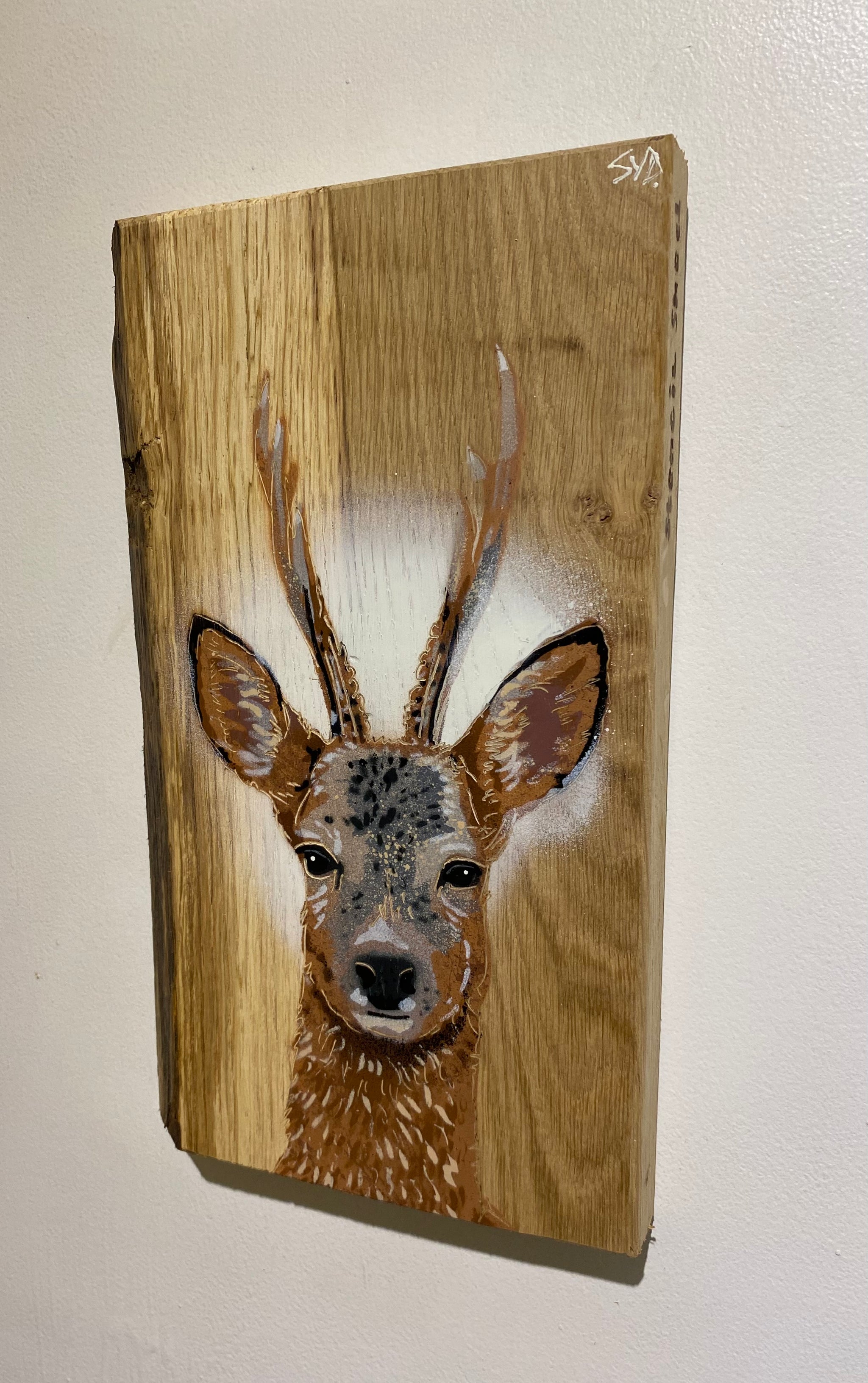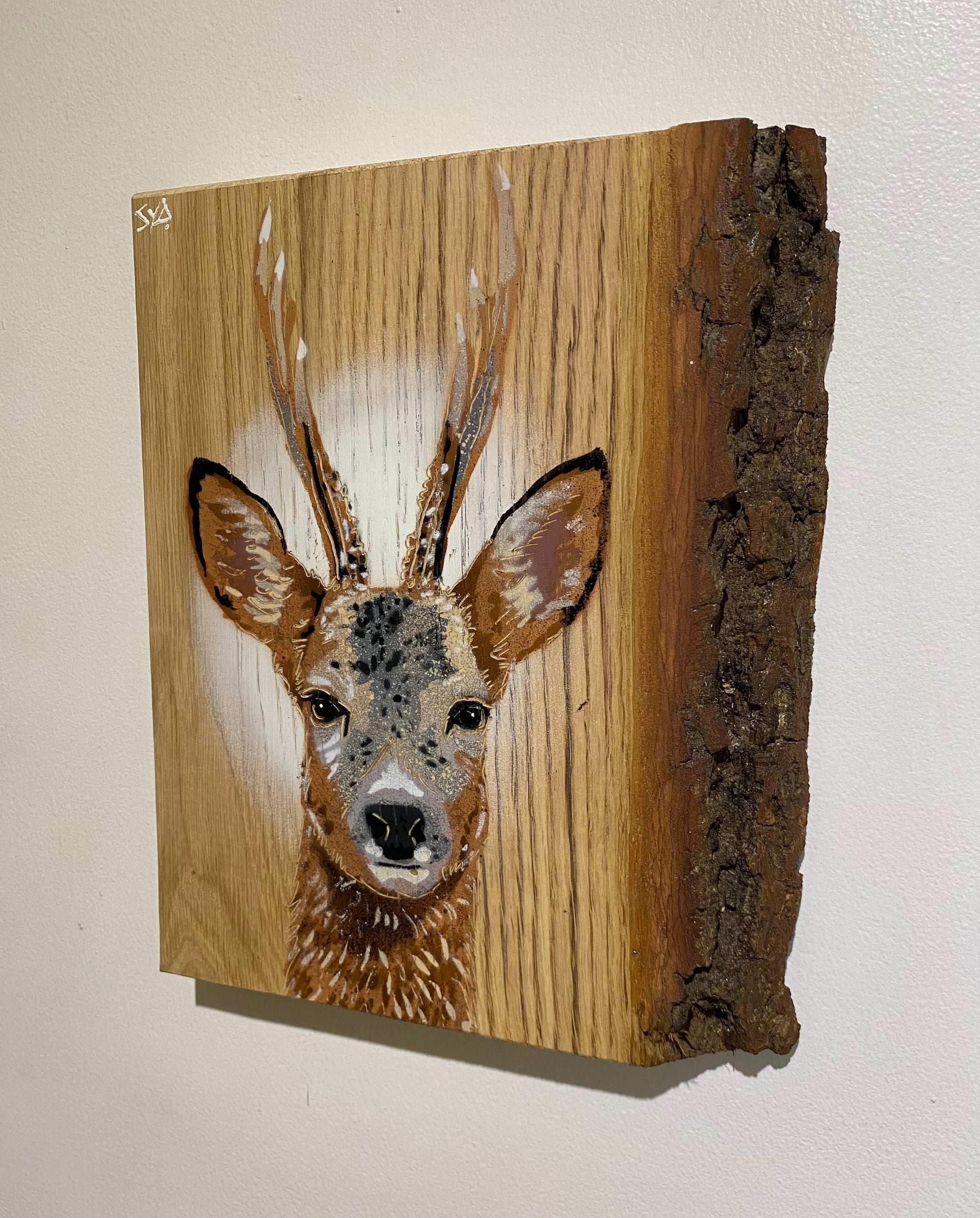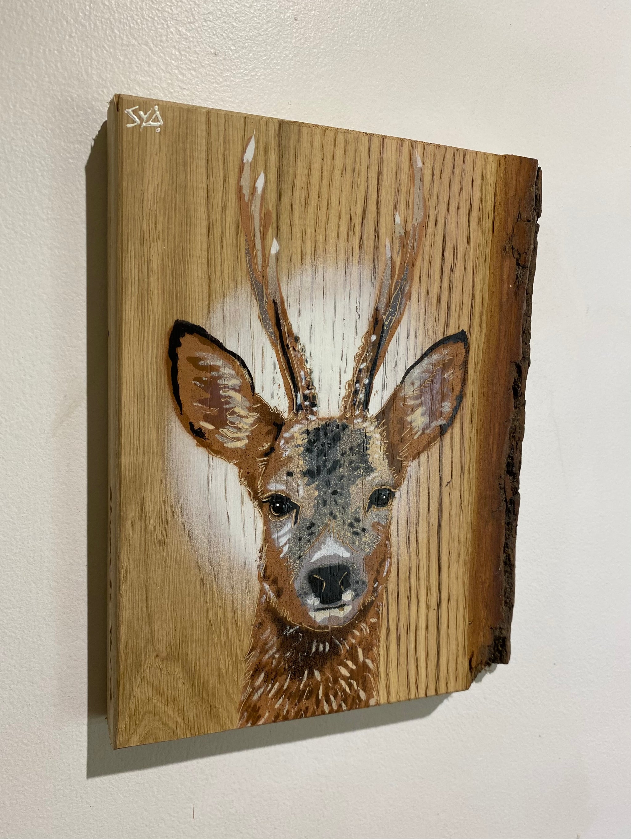 Oh Deer New Roe Deer artwork for 2025 on barky Ash size 18 x 30cm - Number 3 in the new edition