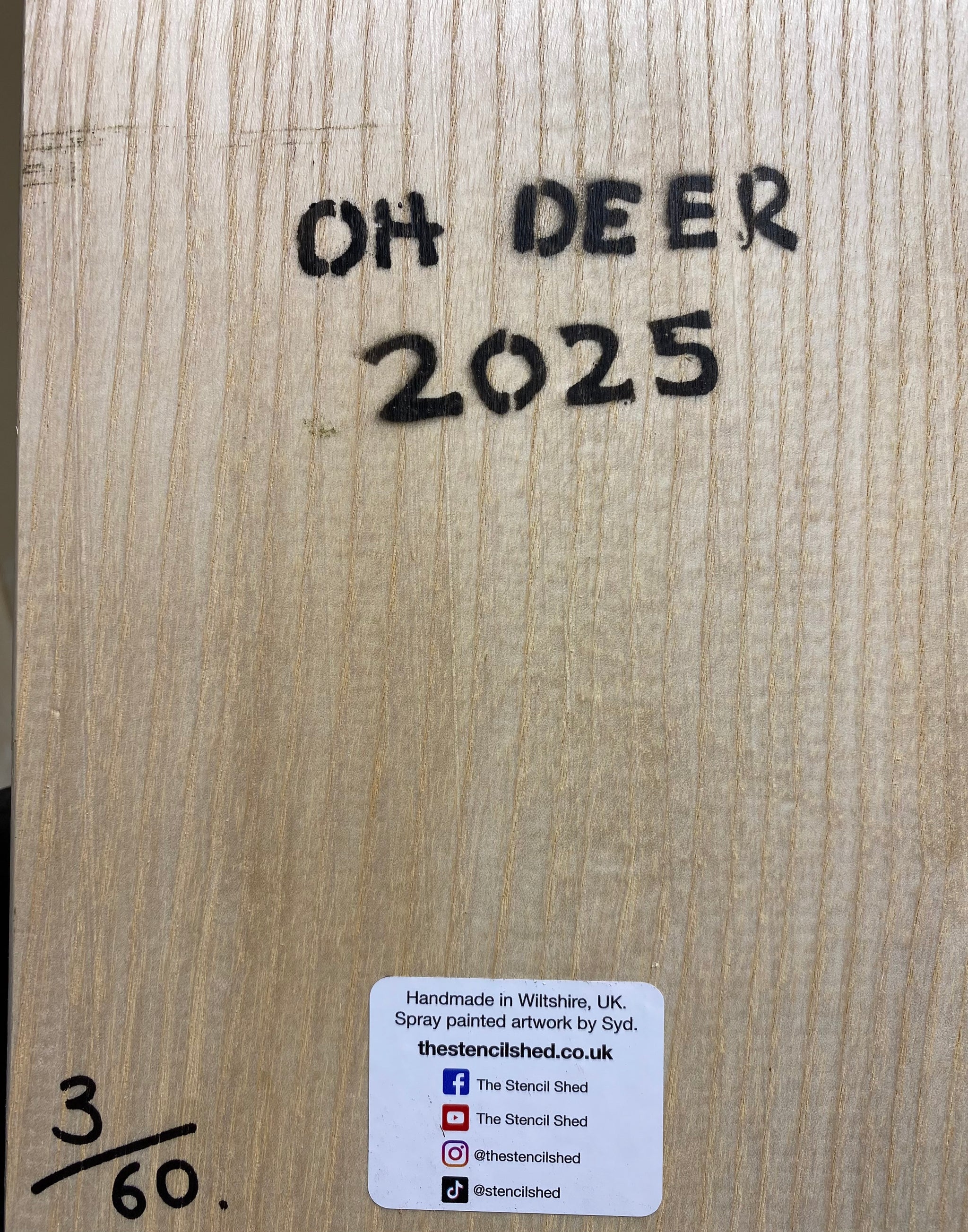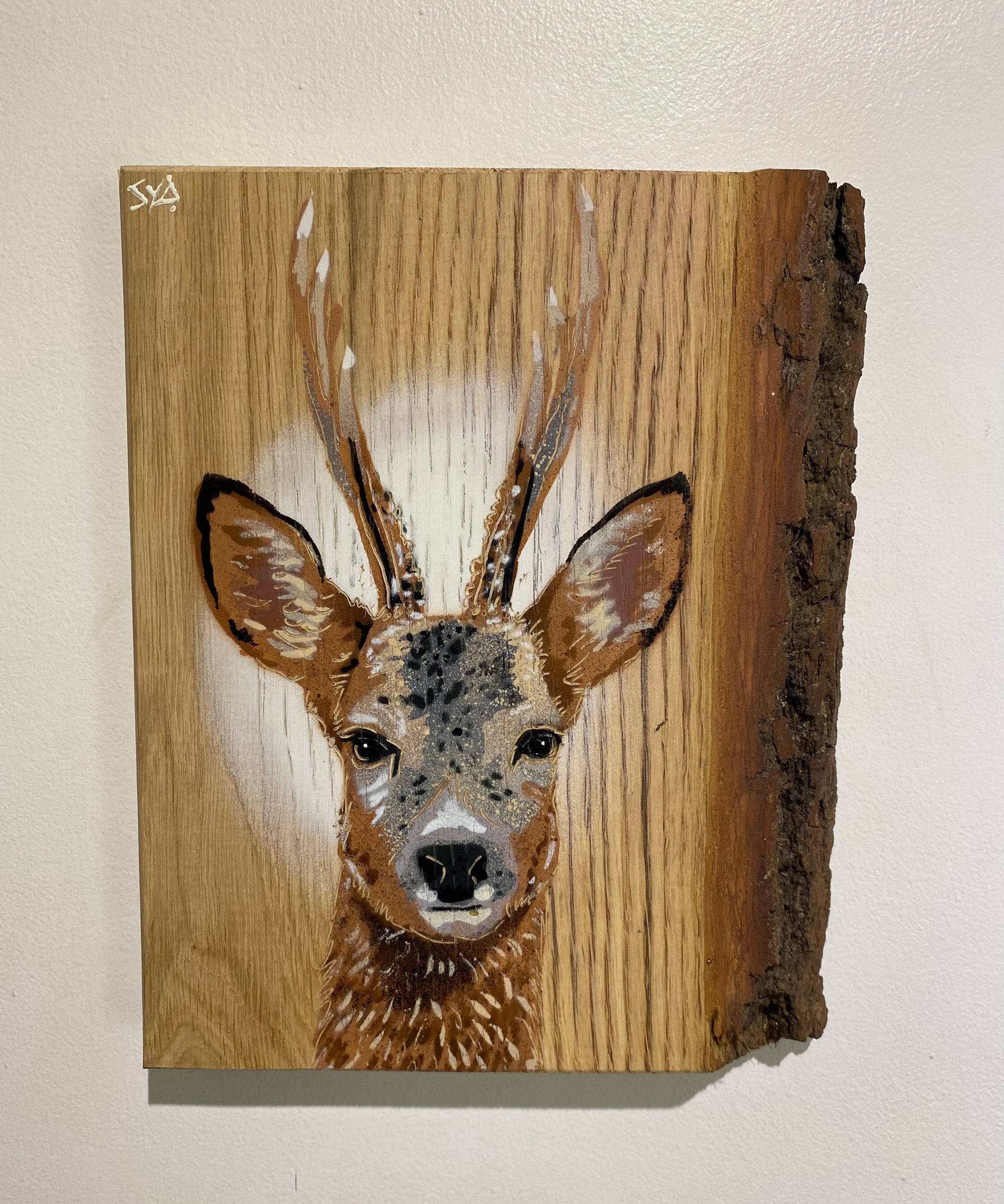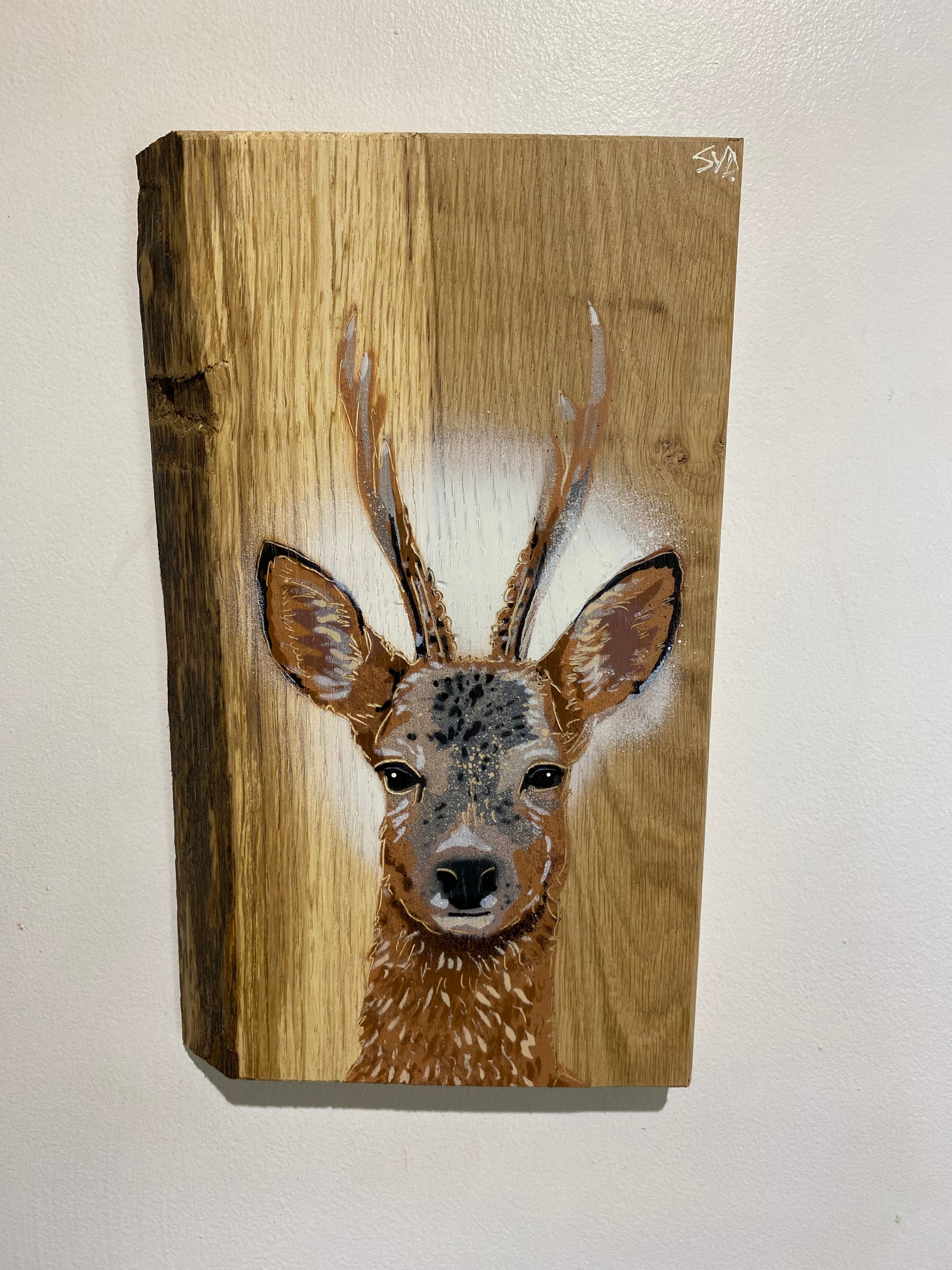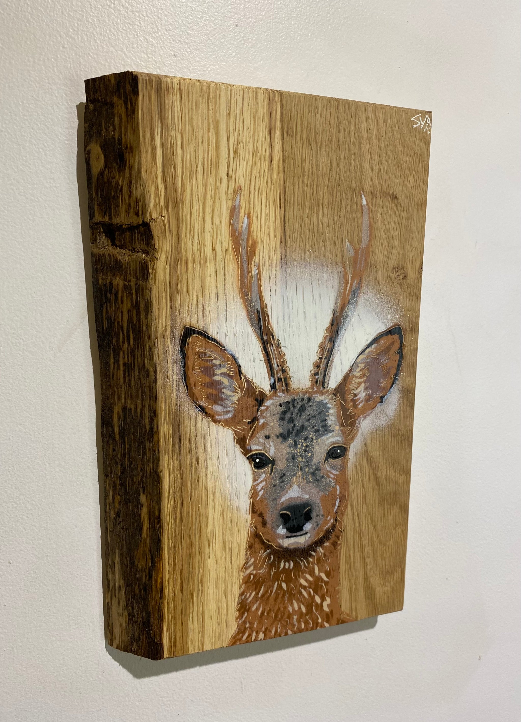 Oh Deer New Roe Deer artwork for 2025 on barky Ash size 18 x 30cm - Number 3 in the new edition
