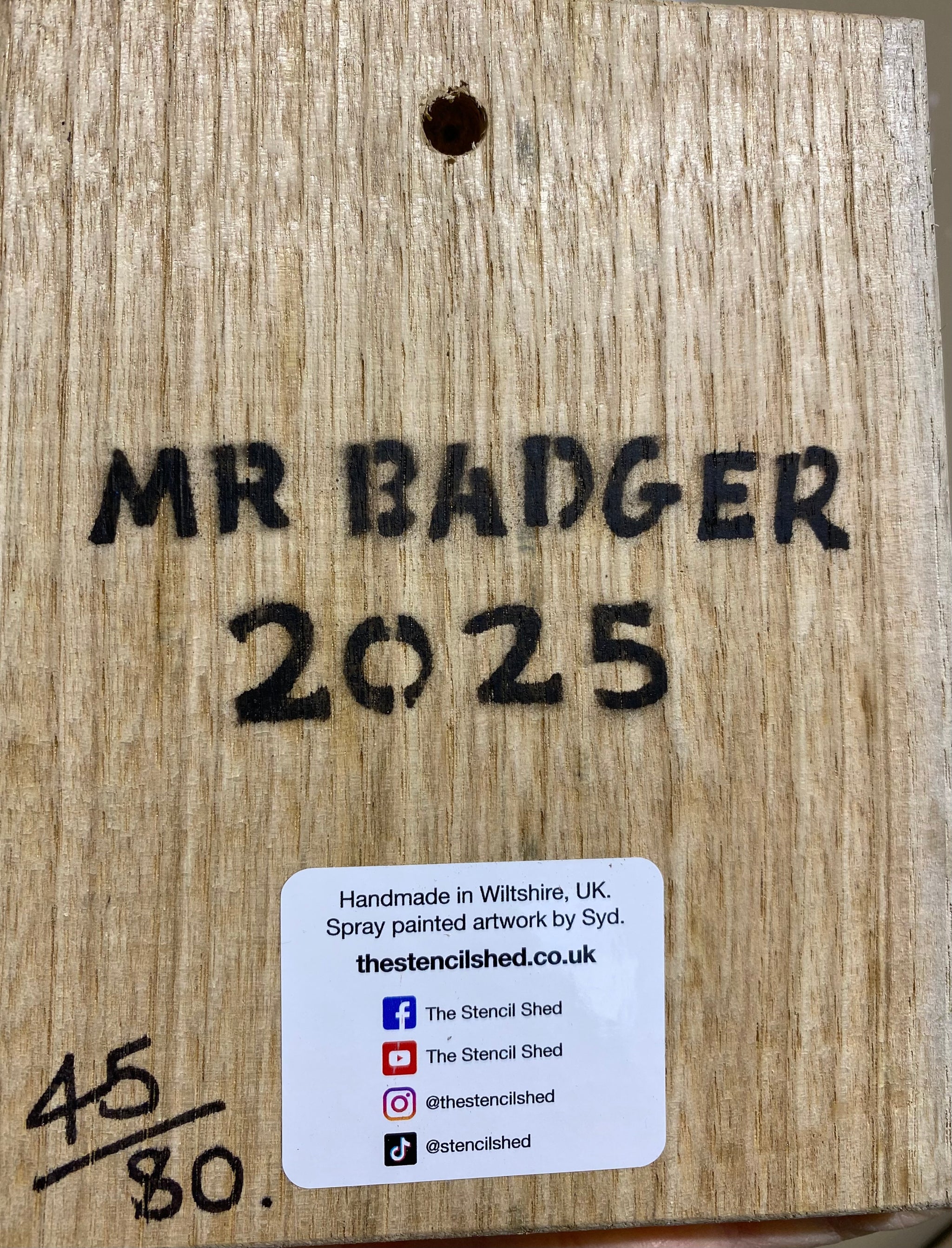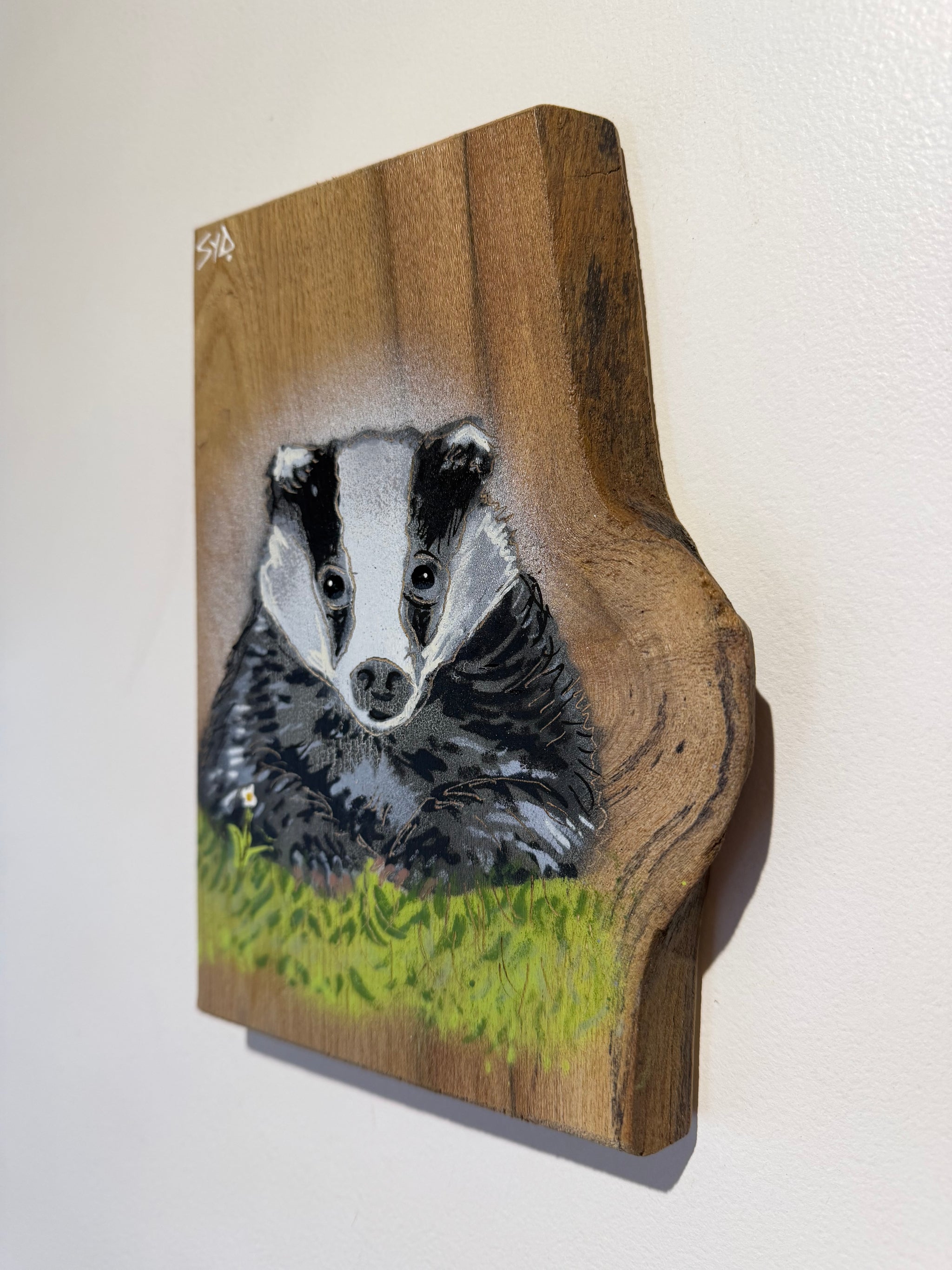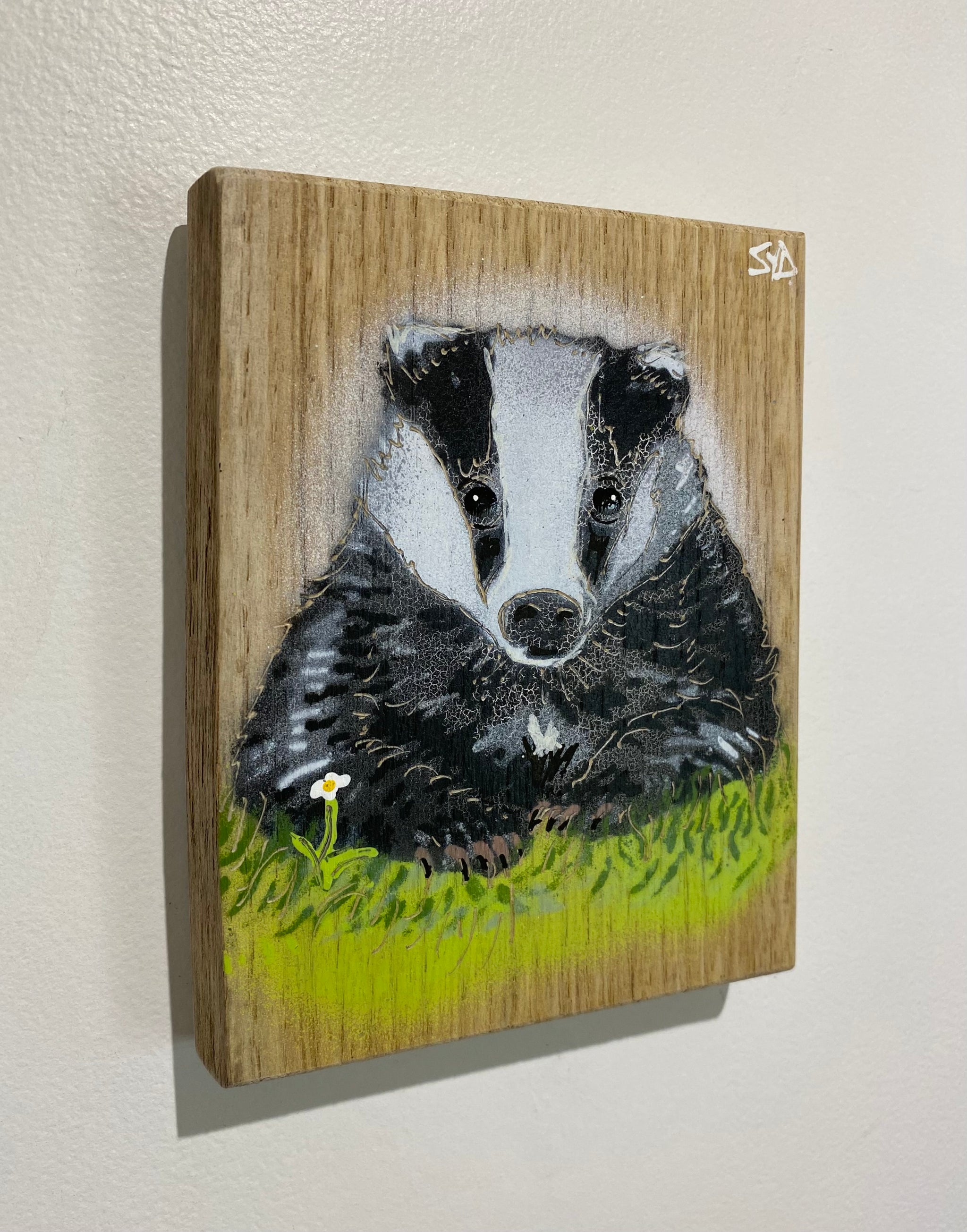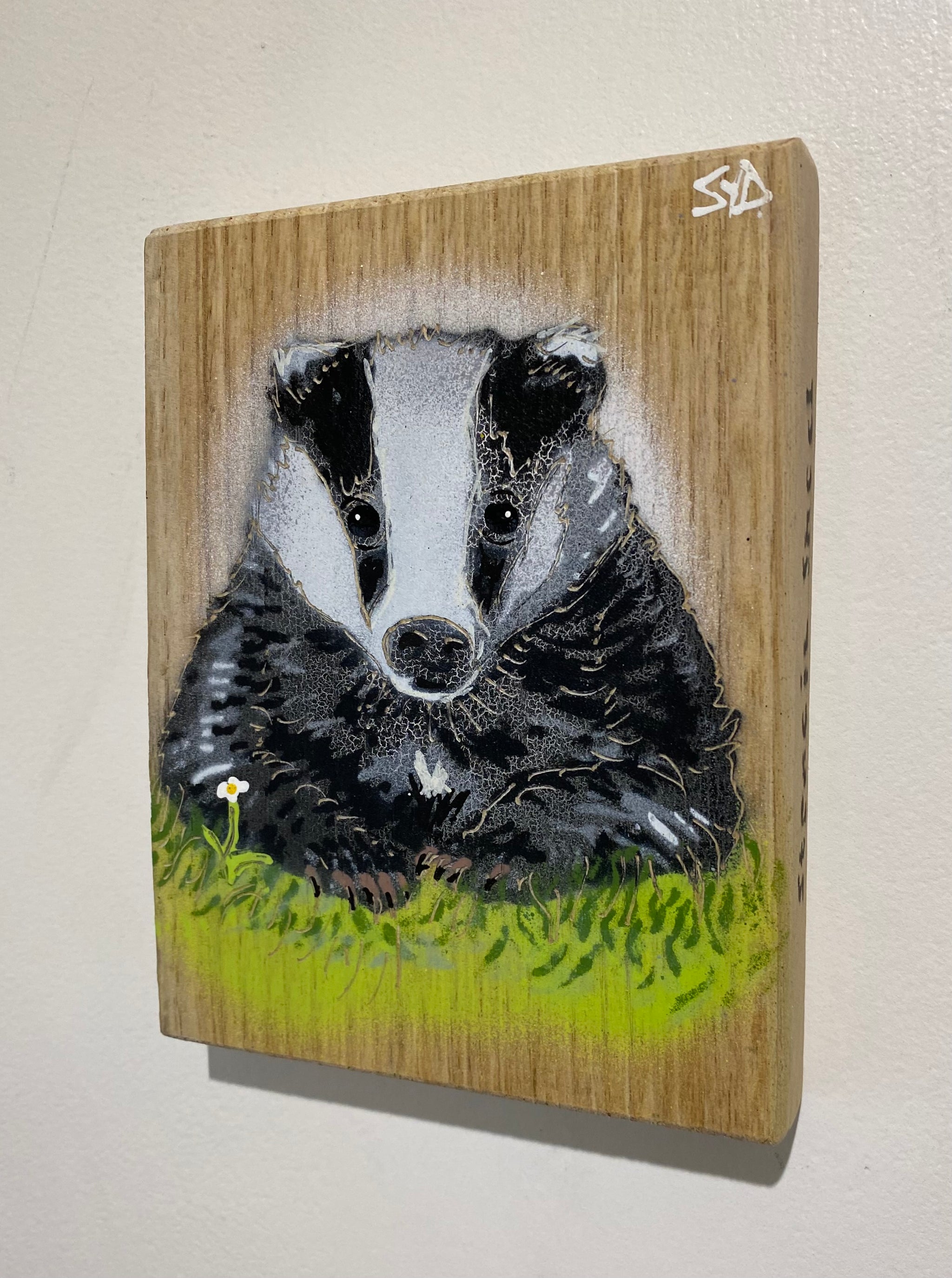 Mr Badger Limited Edition Artwork - Number 45 on Oak wood from the UK - 13 x 17cm