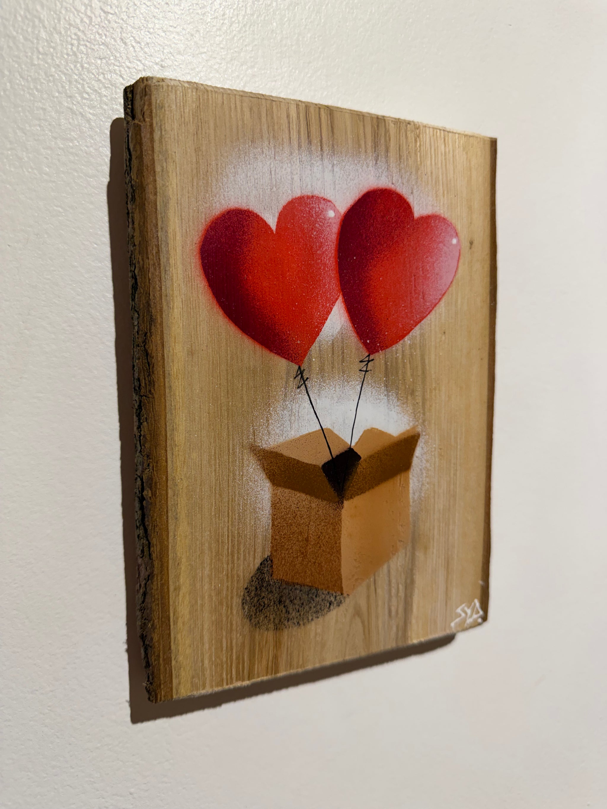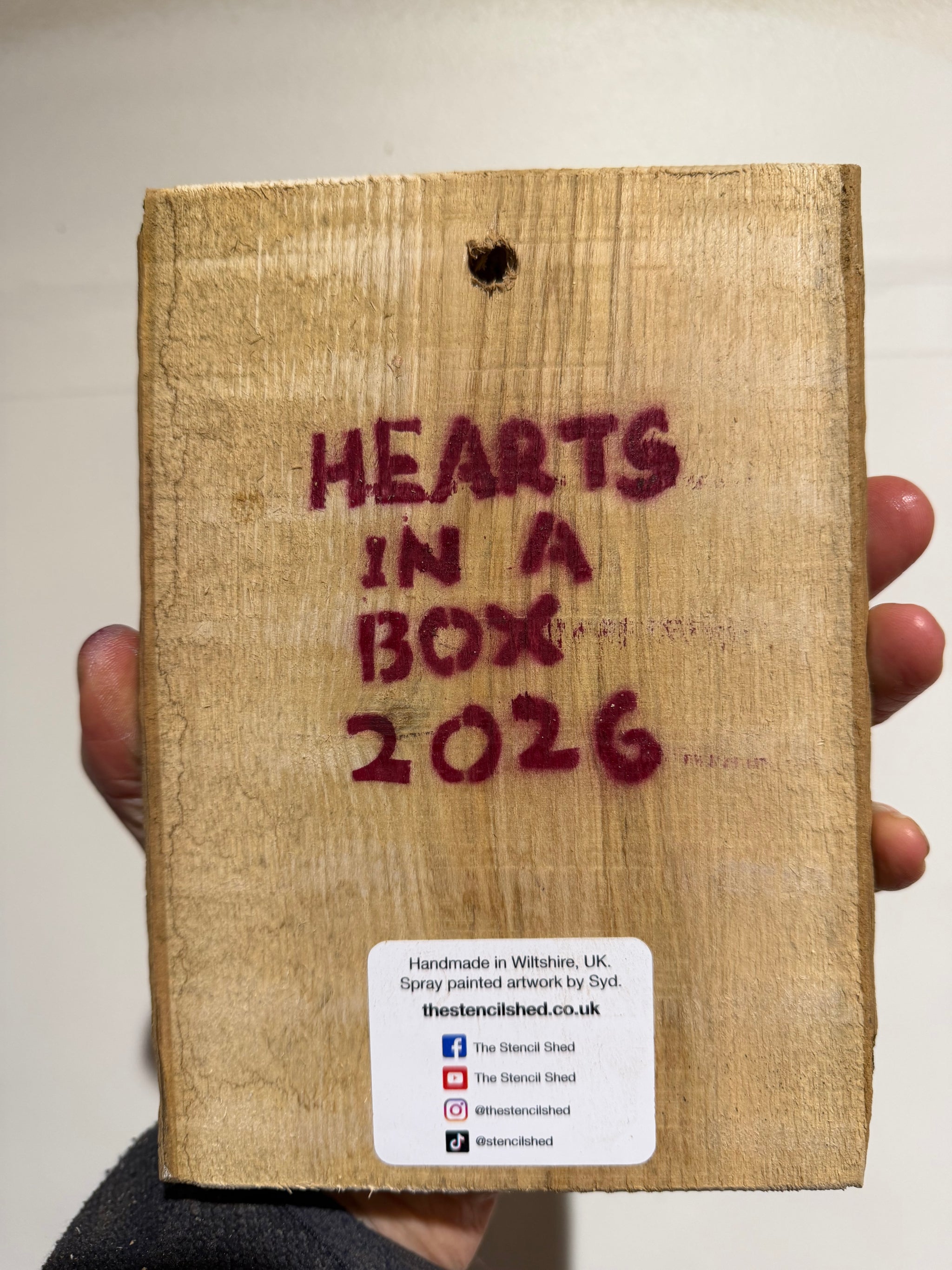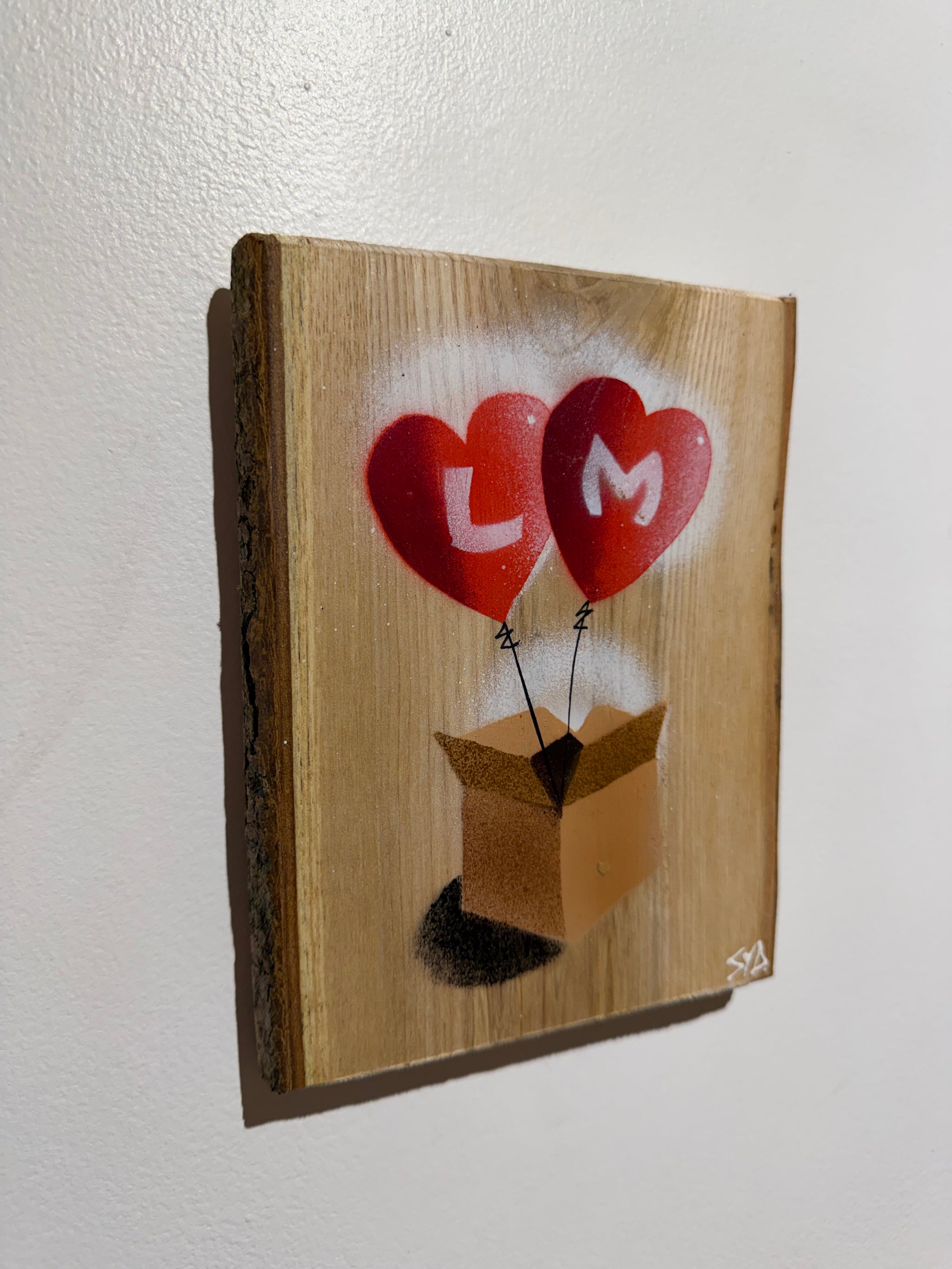 Hearts in a Box Personalised - New for Valentines 2026 - Handmade Stencil artwork on barky Ash Wood - 14 x 19cm