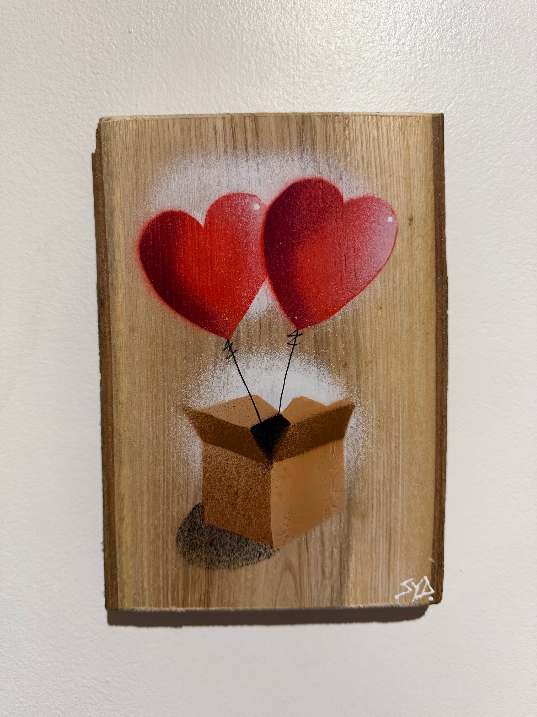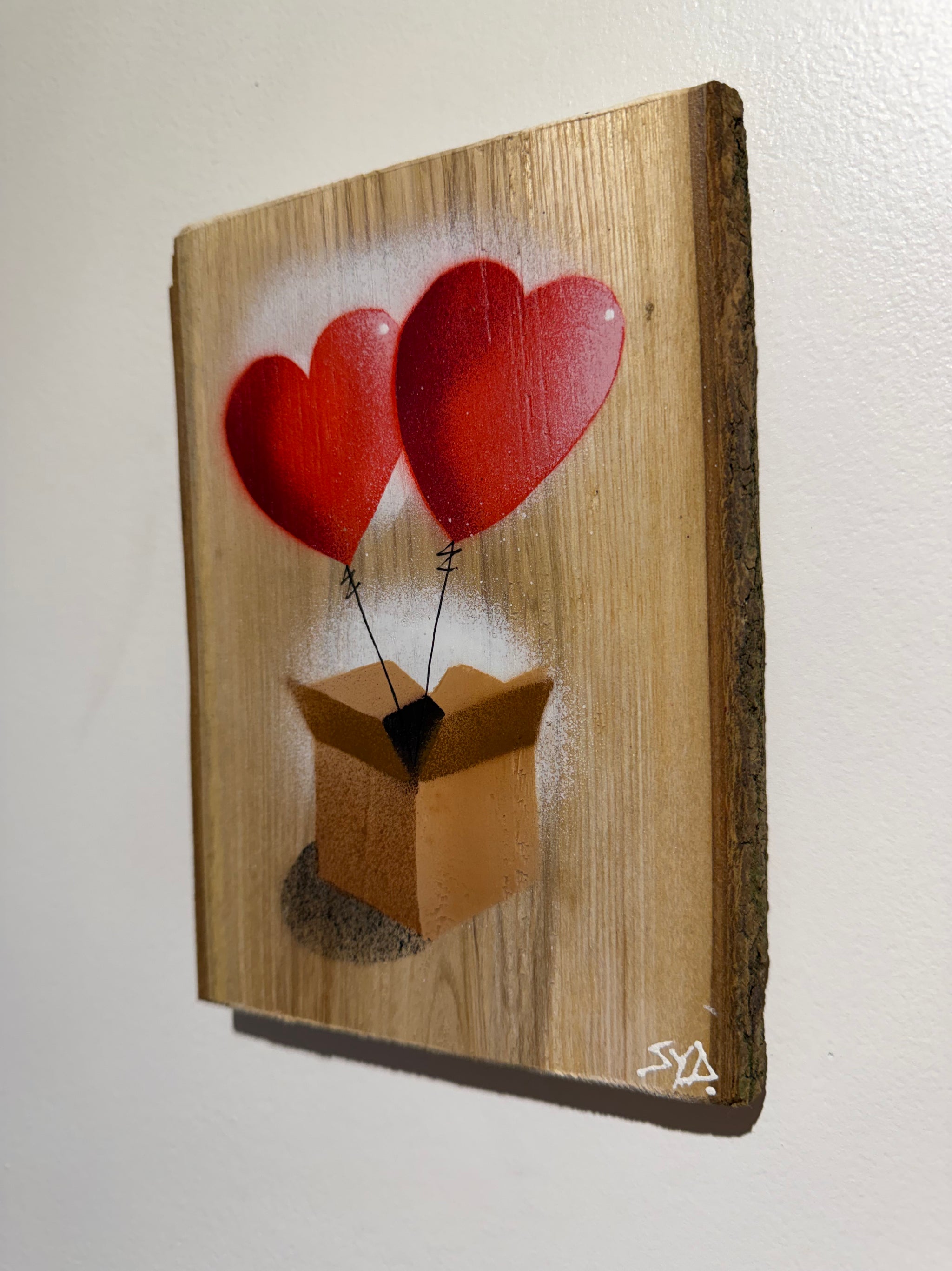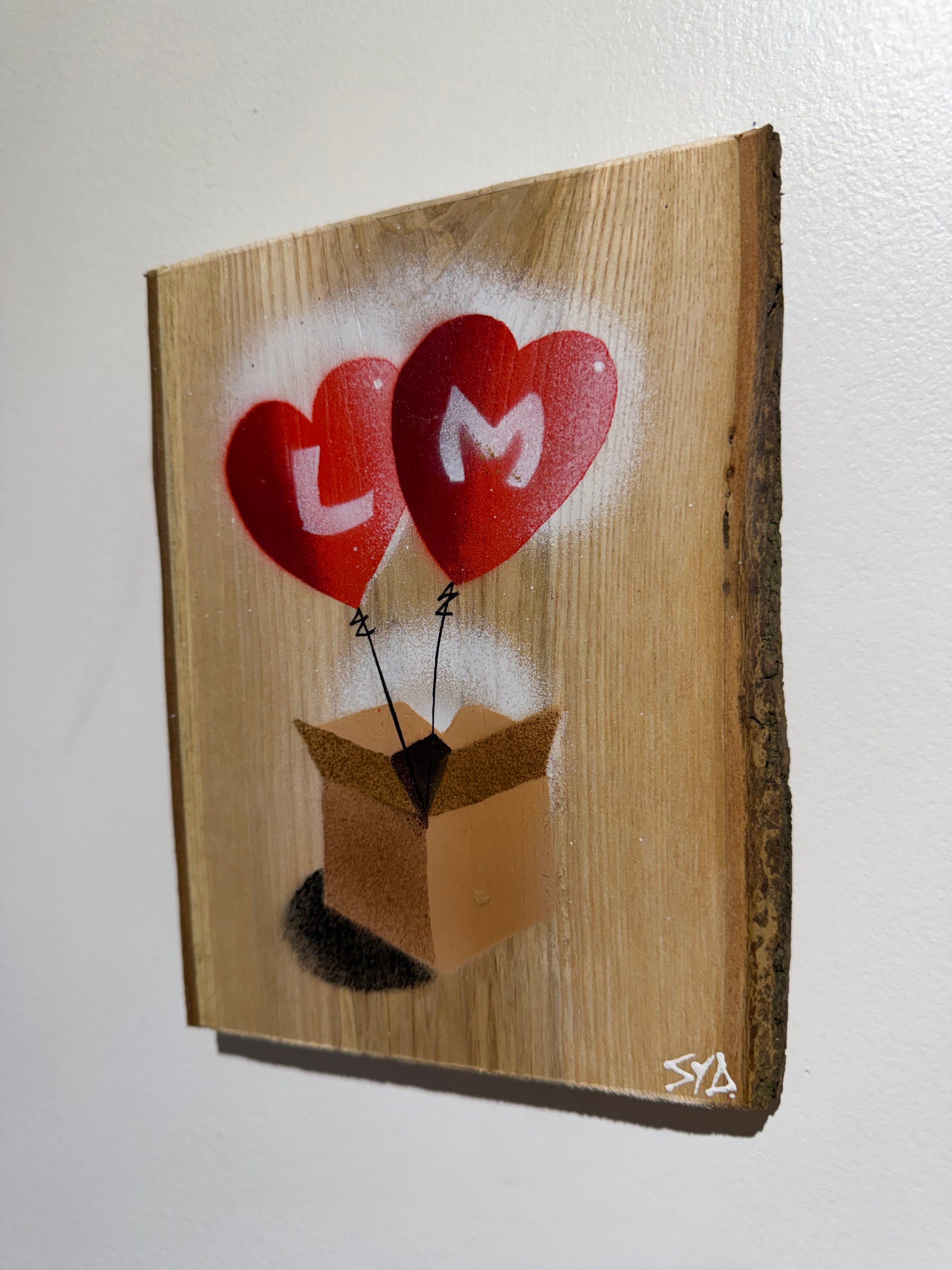 Hearts in a Box Personalised - New for Valentines 2026 - Handmade Stencil artwork on barky Ash Wood - 14 x 19cm