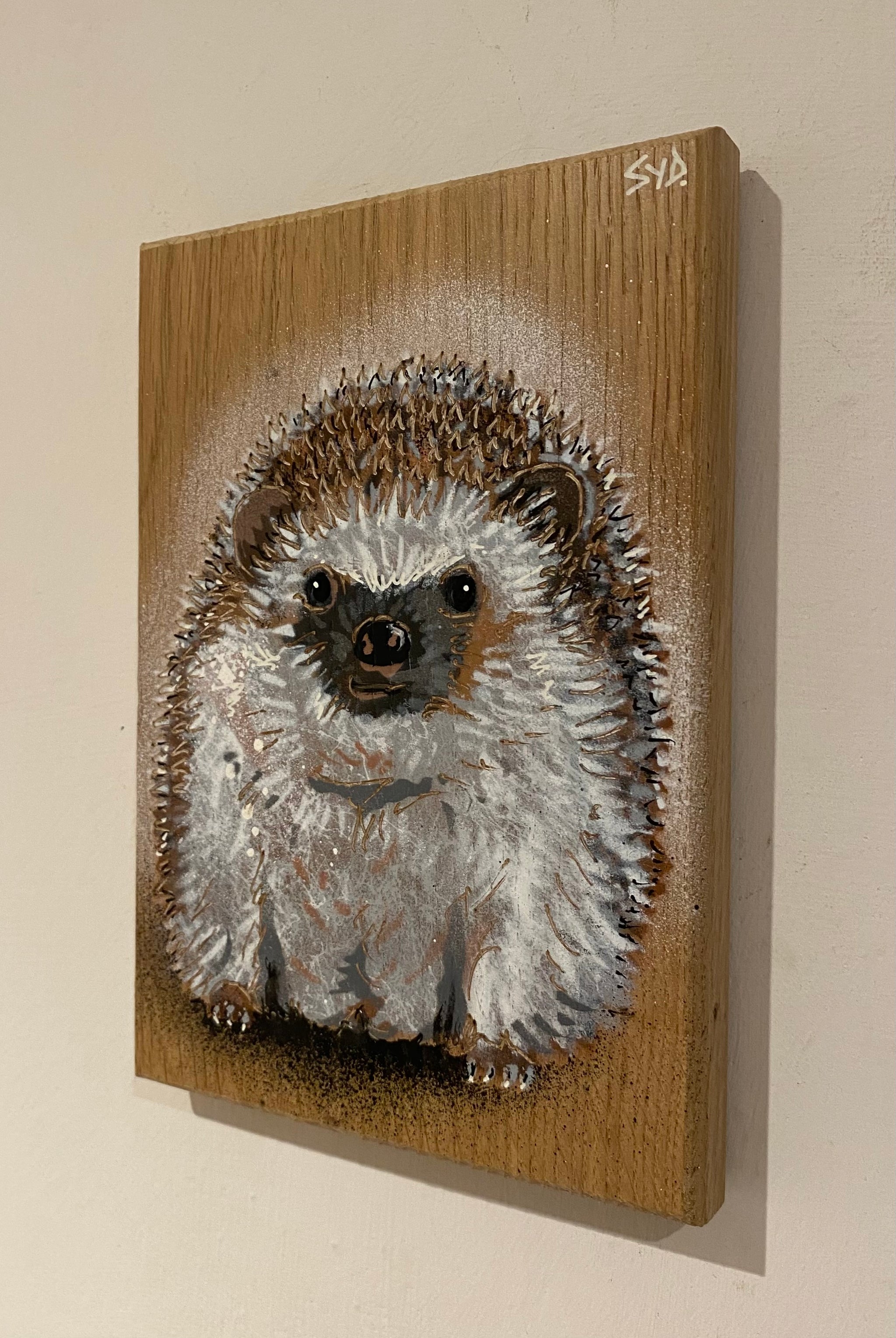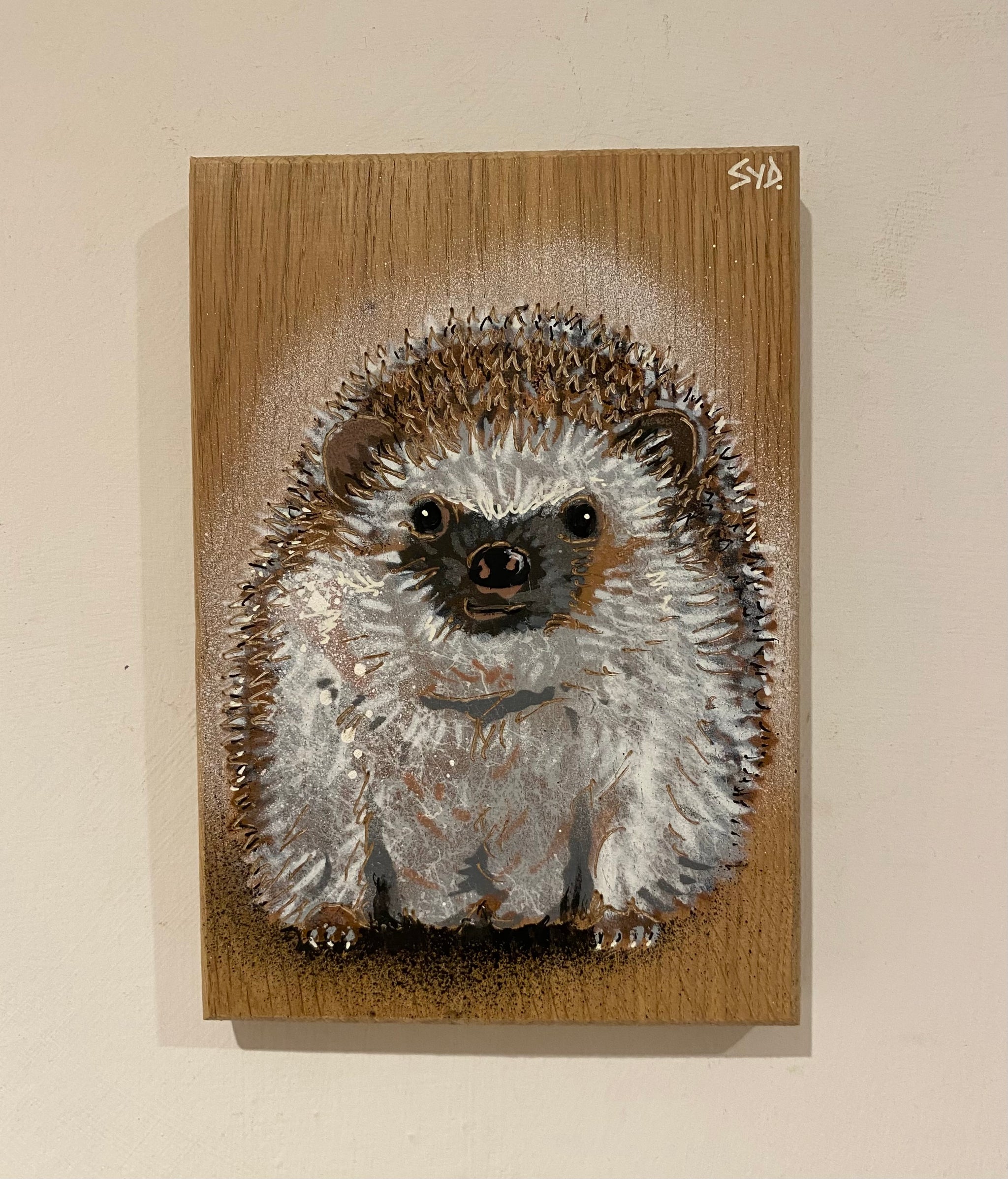 Hedgehog - New artwork for Christmas 2025 on Oak wood - Number 3 - size 14 x 20cm