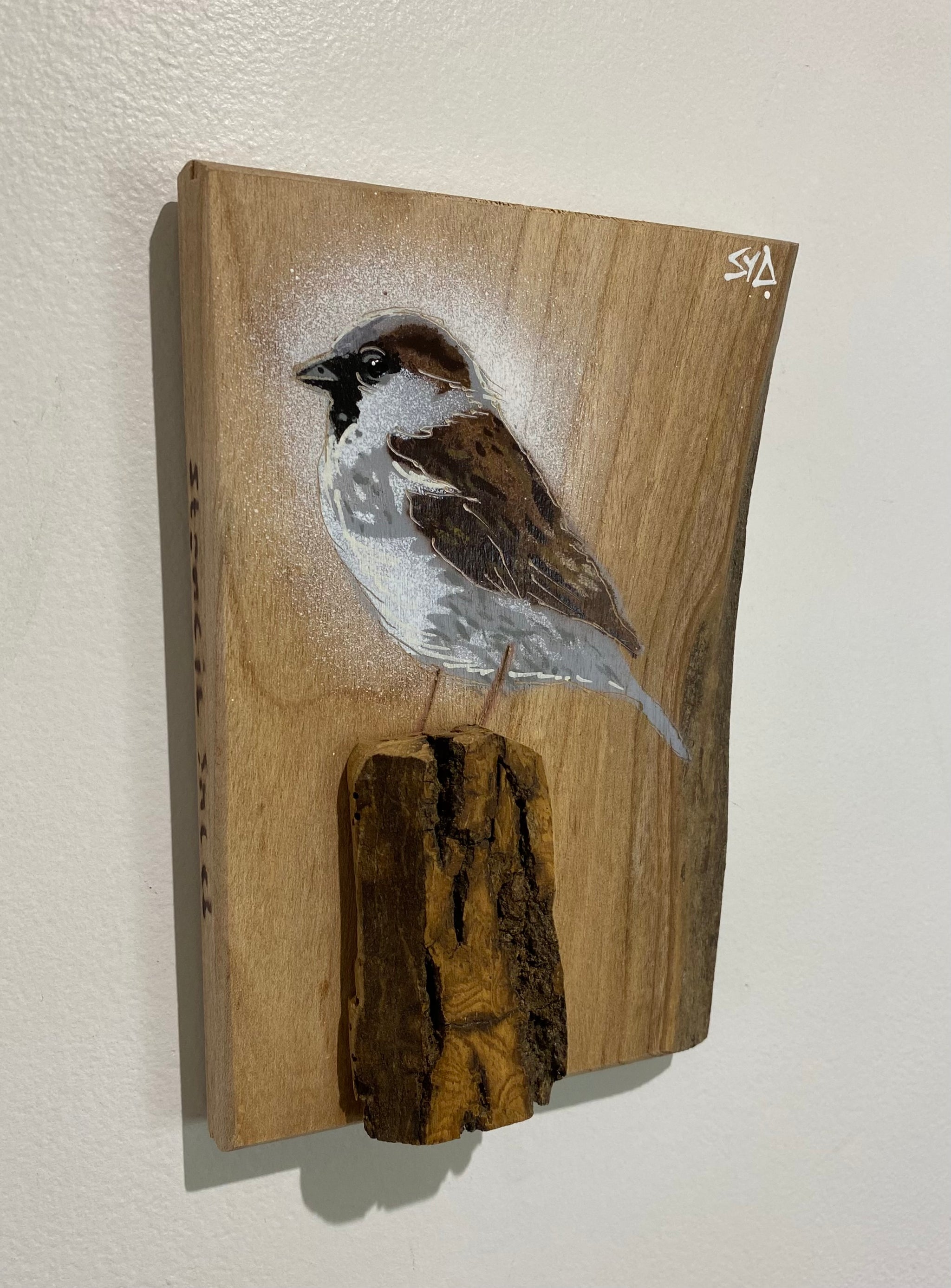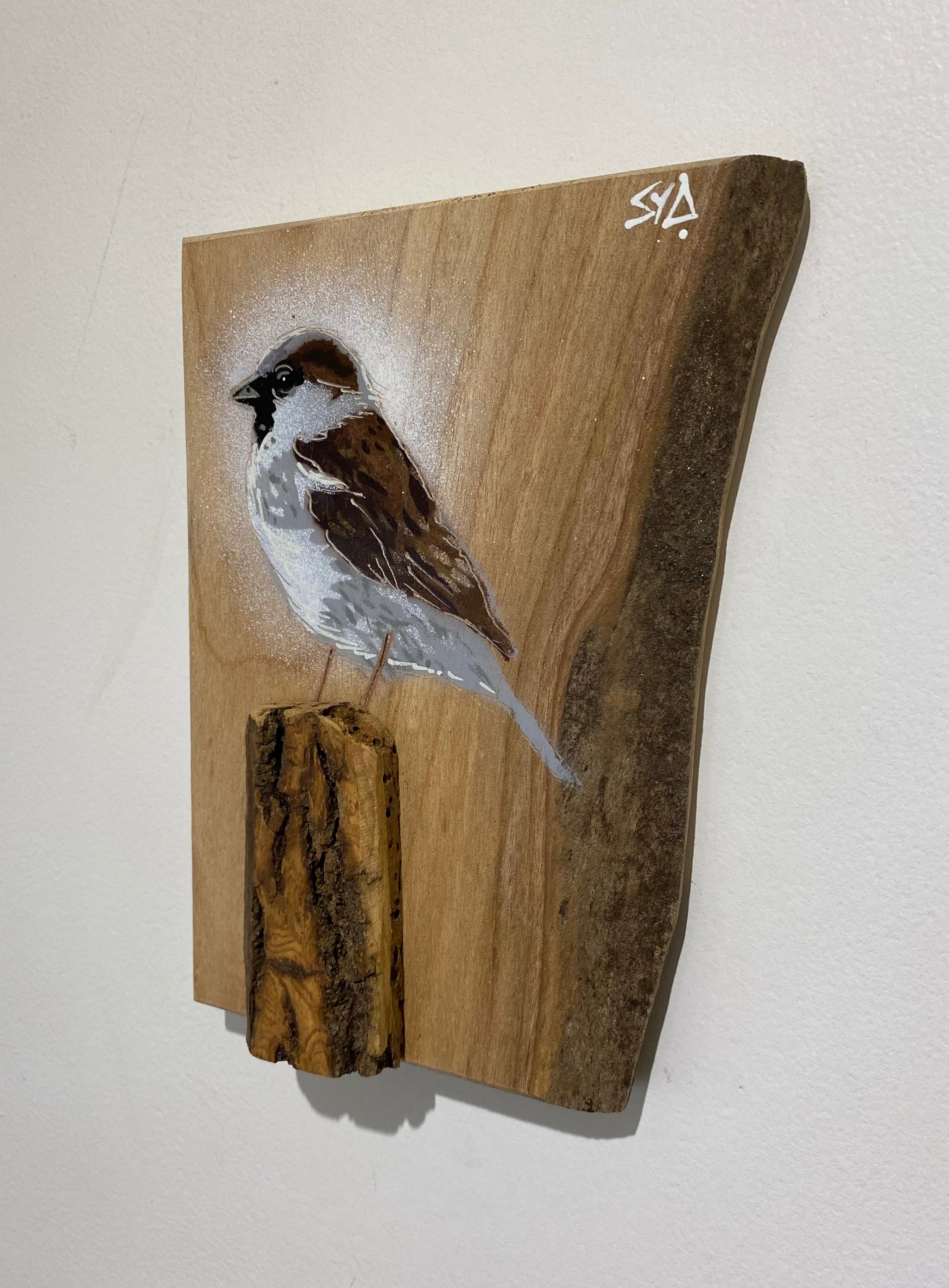 Log Art Wren on sustainably sourced Ash wood from Syd's local area - 21 x 26cm - Very unique artwork