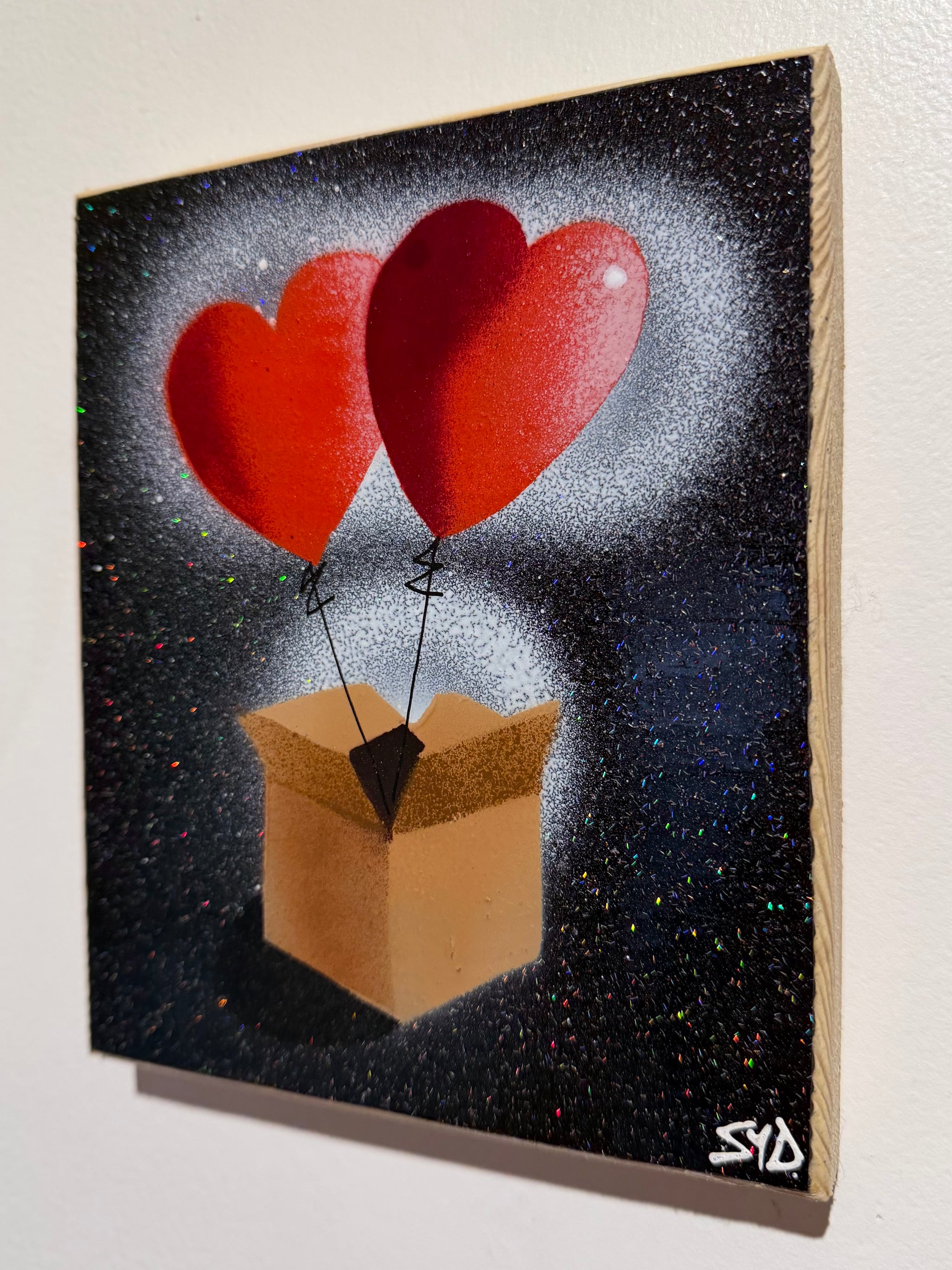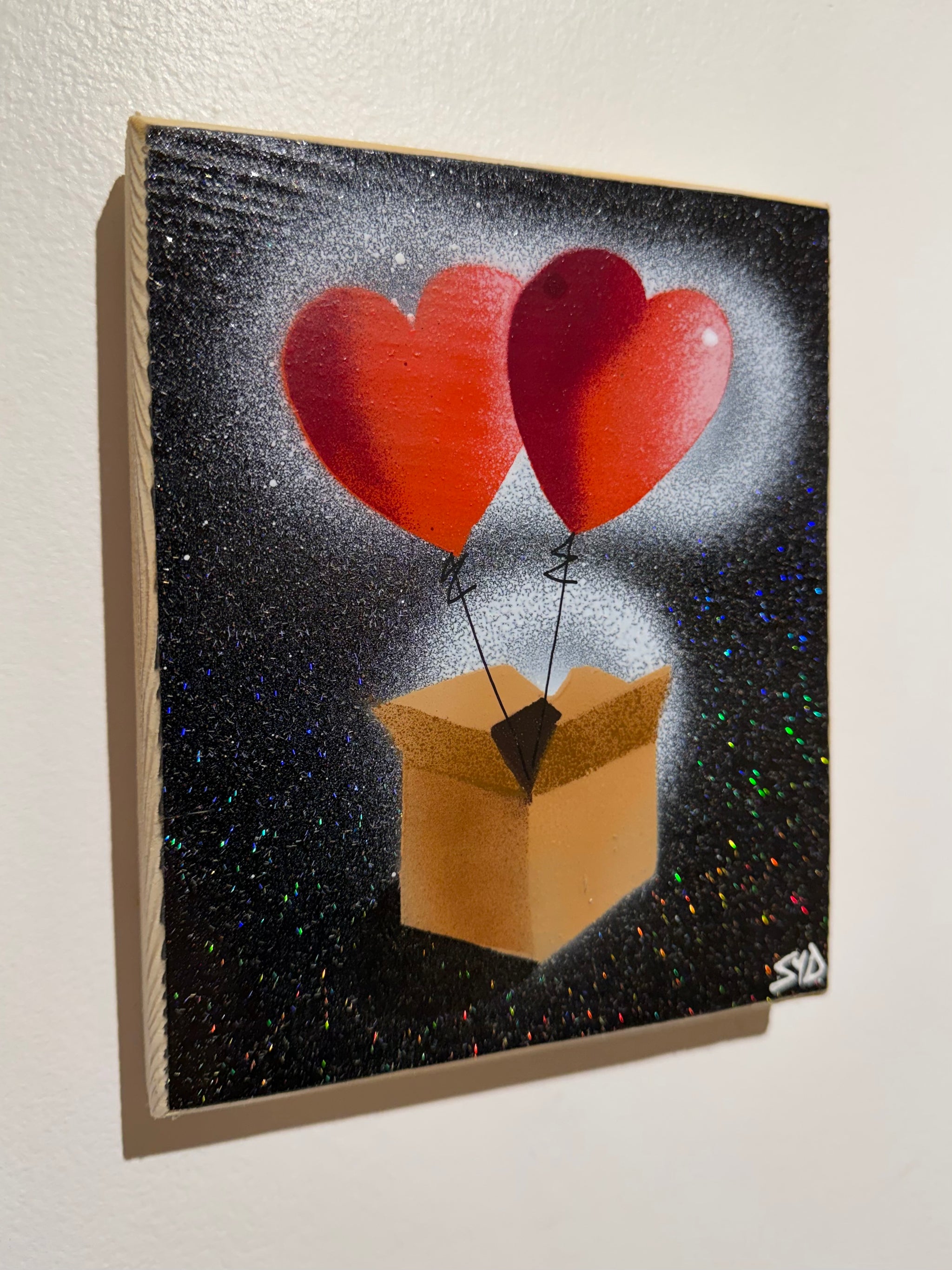 Hearts in a Box Personalised - New for Valentines 2026 - Handmade Stencil artwork on Black Sparkle Wood - 17 x 17cm
