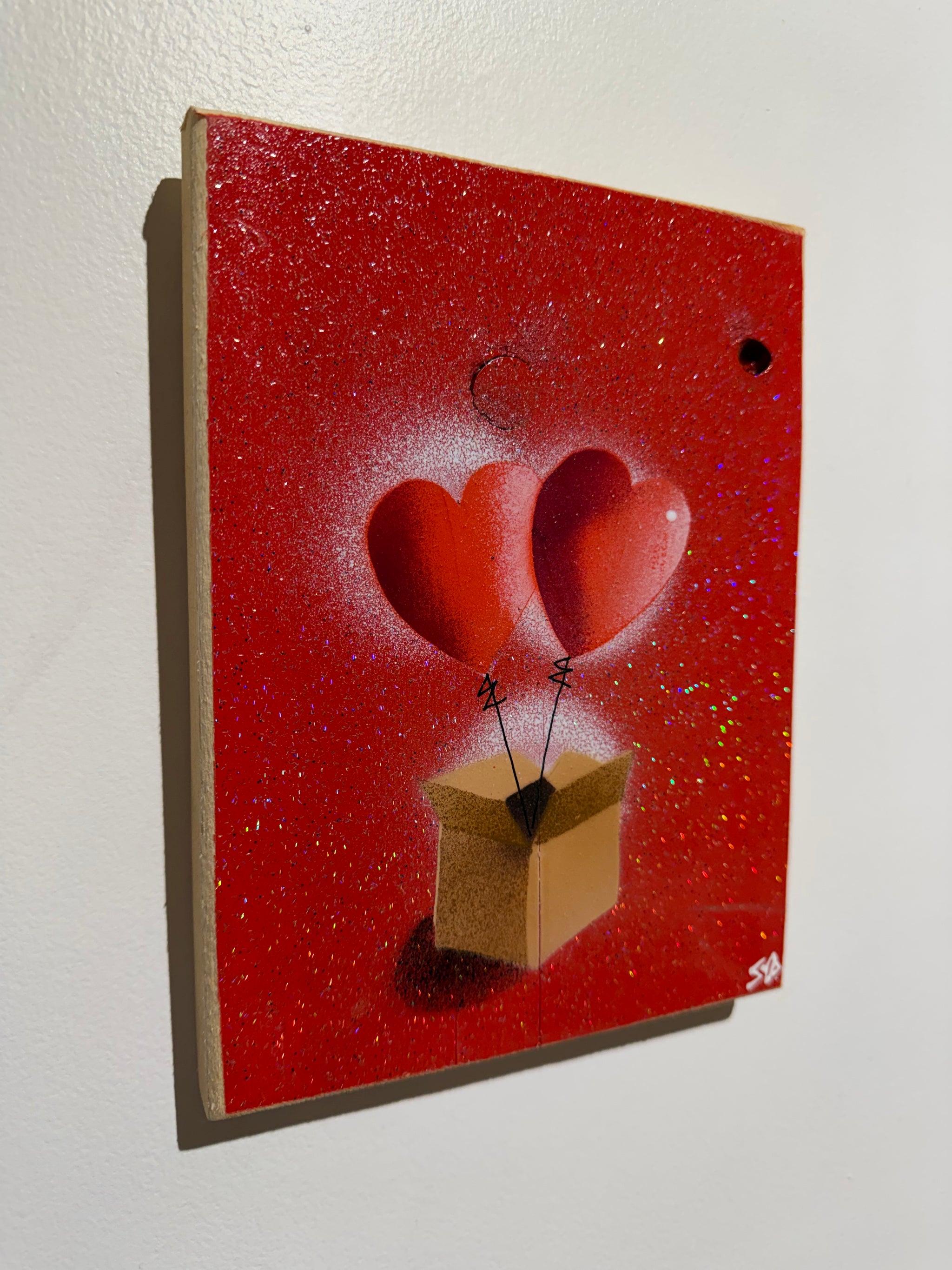 Hearts in a Box Personalised - New for Valentines 2026 - Handmade Stencil artwork on Red Sparkle Wood - 17 x 22cm