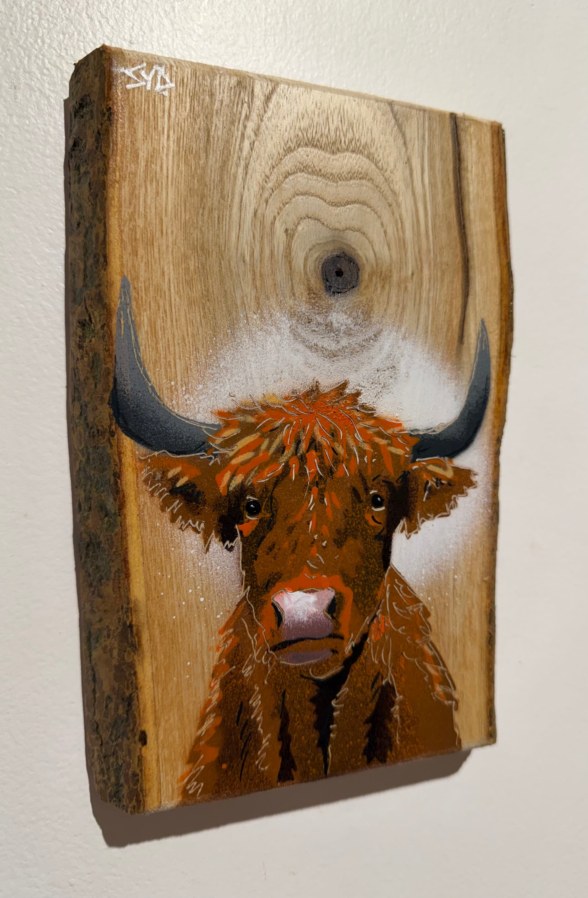 Highland Cow 2026 Barky Ash Wood - Signed Limited Edition Artwork - size 14 x 20cm - Number 11