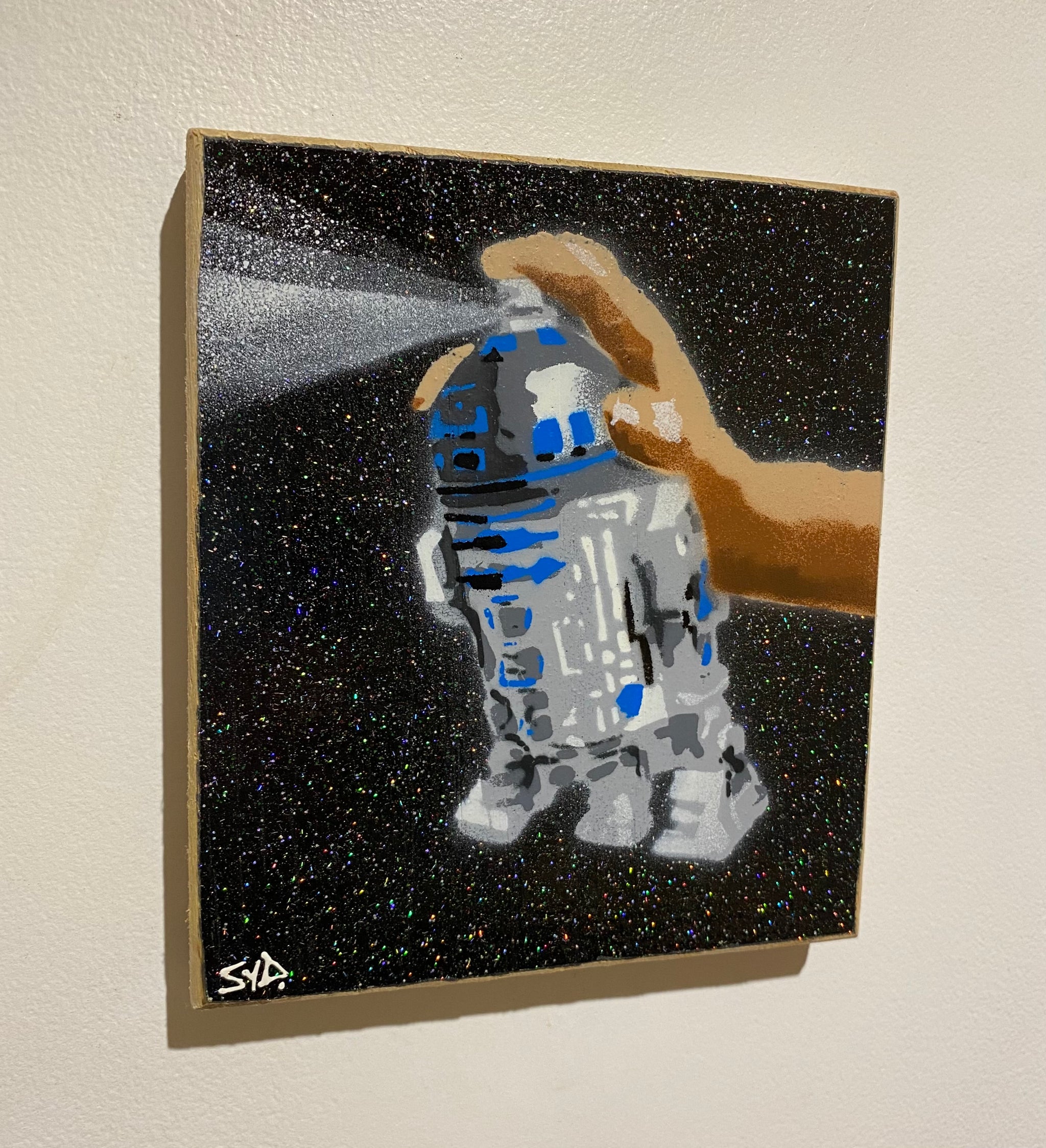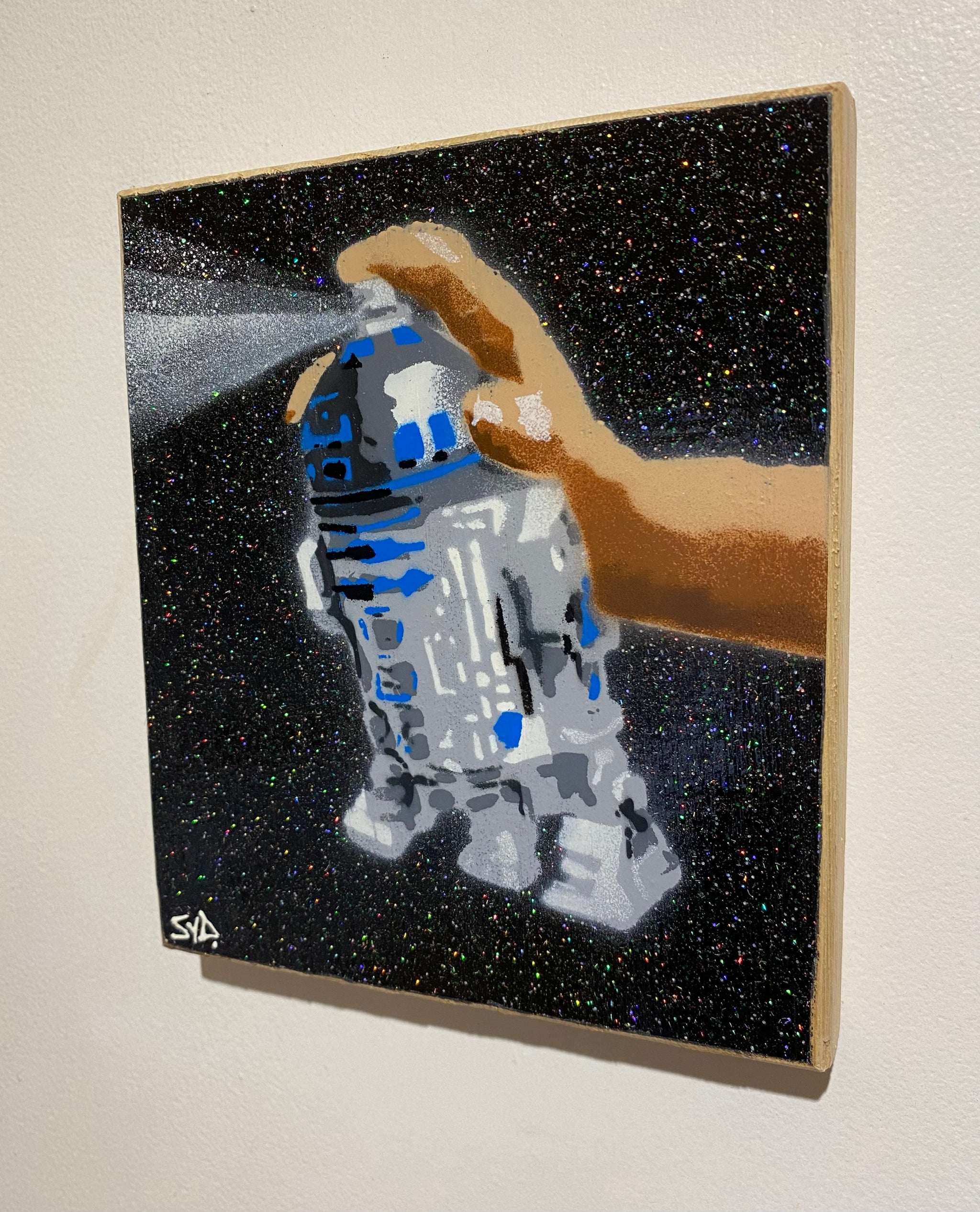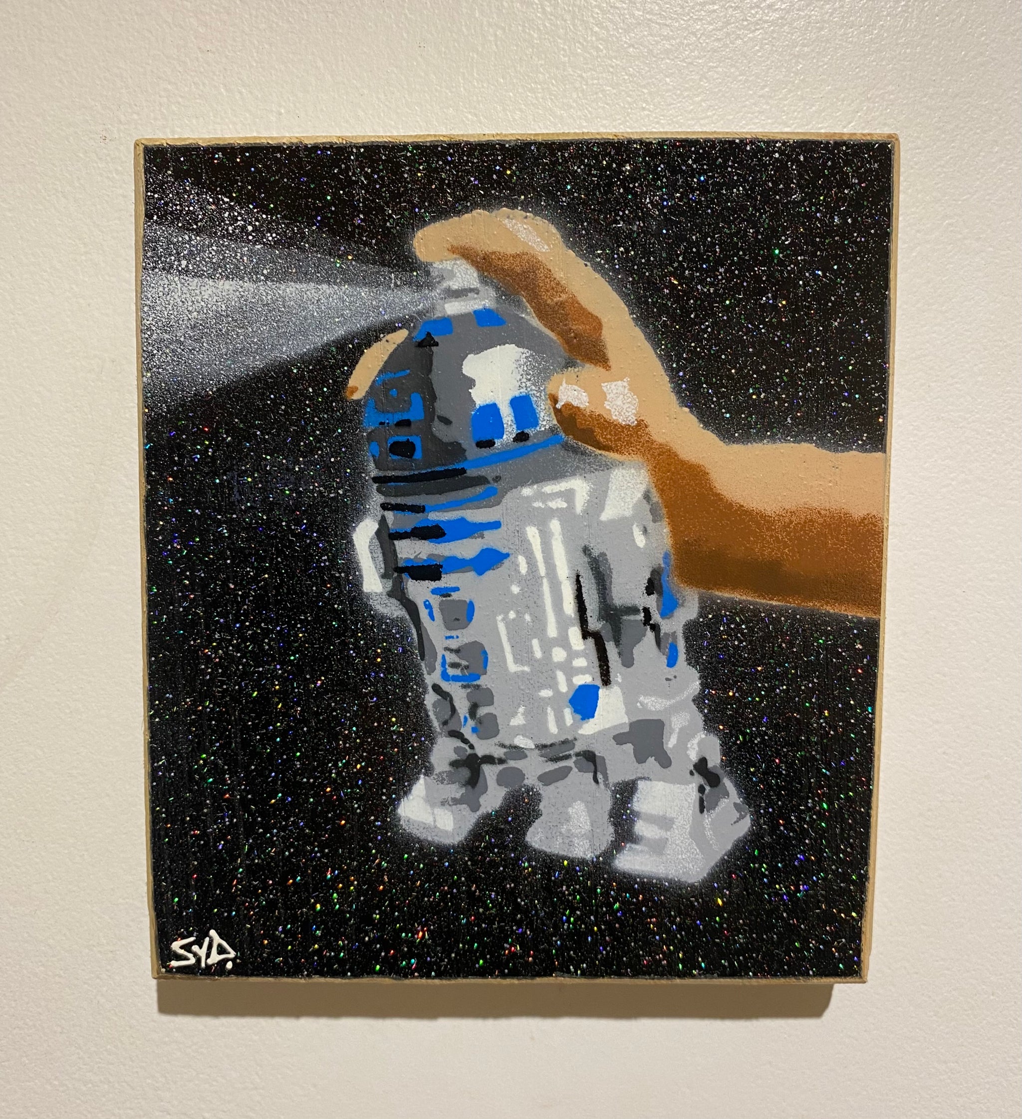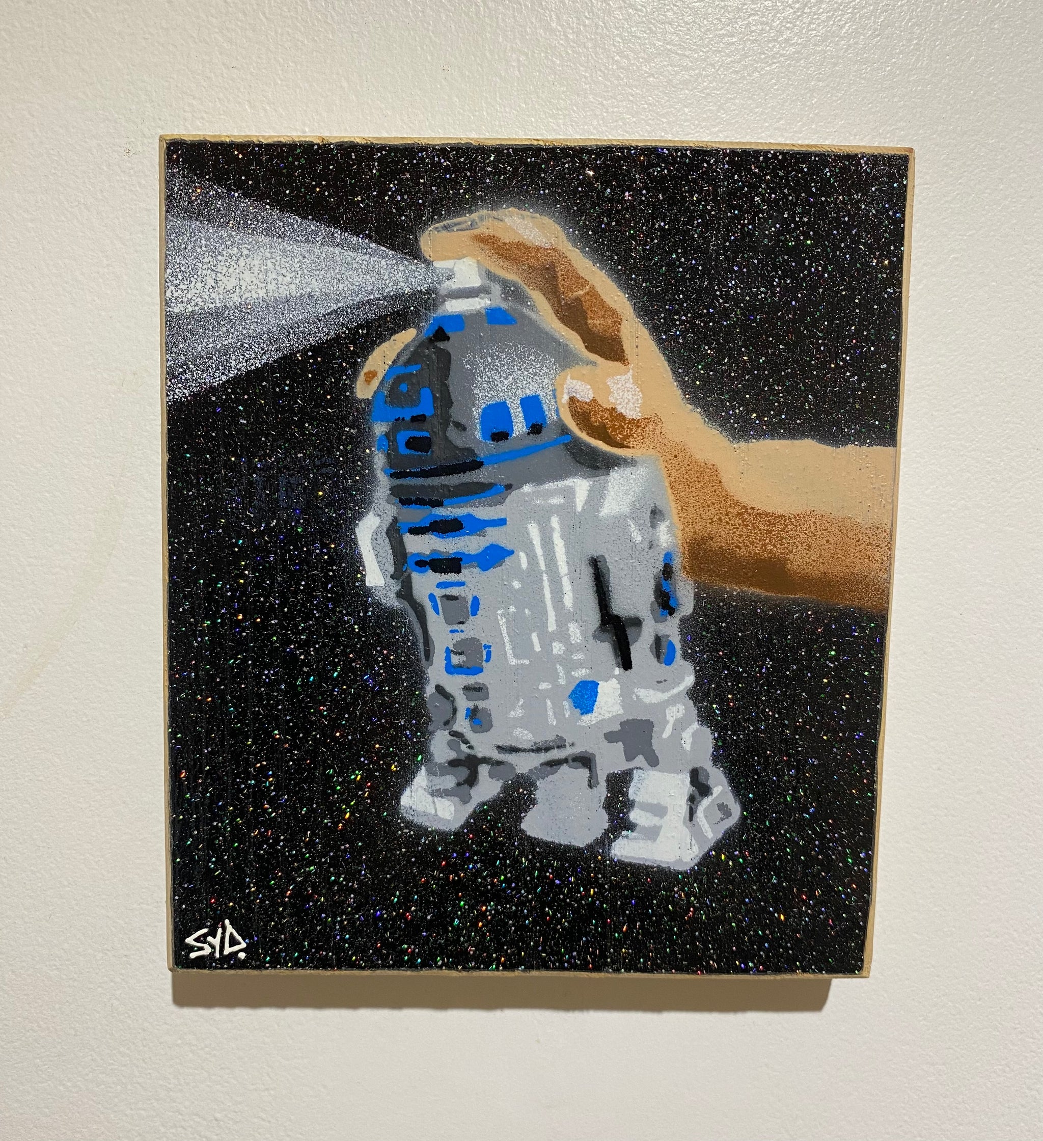 R2 Spray Can New 'Sparkle Edition' on English Oak - Very popular piece - size 15 x 18cm - Number 3