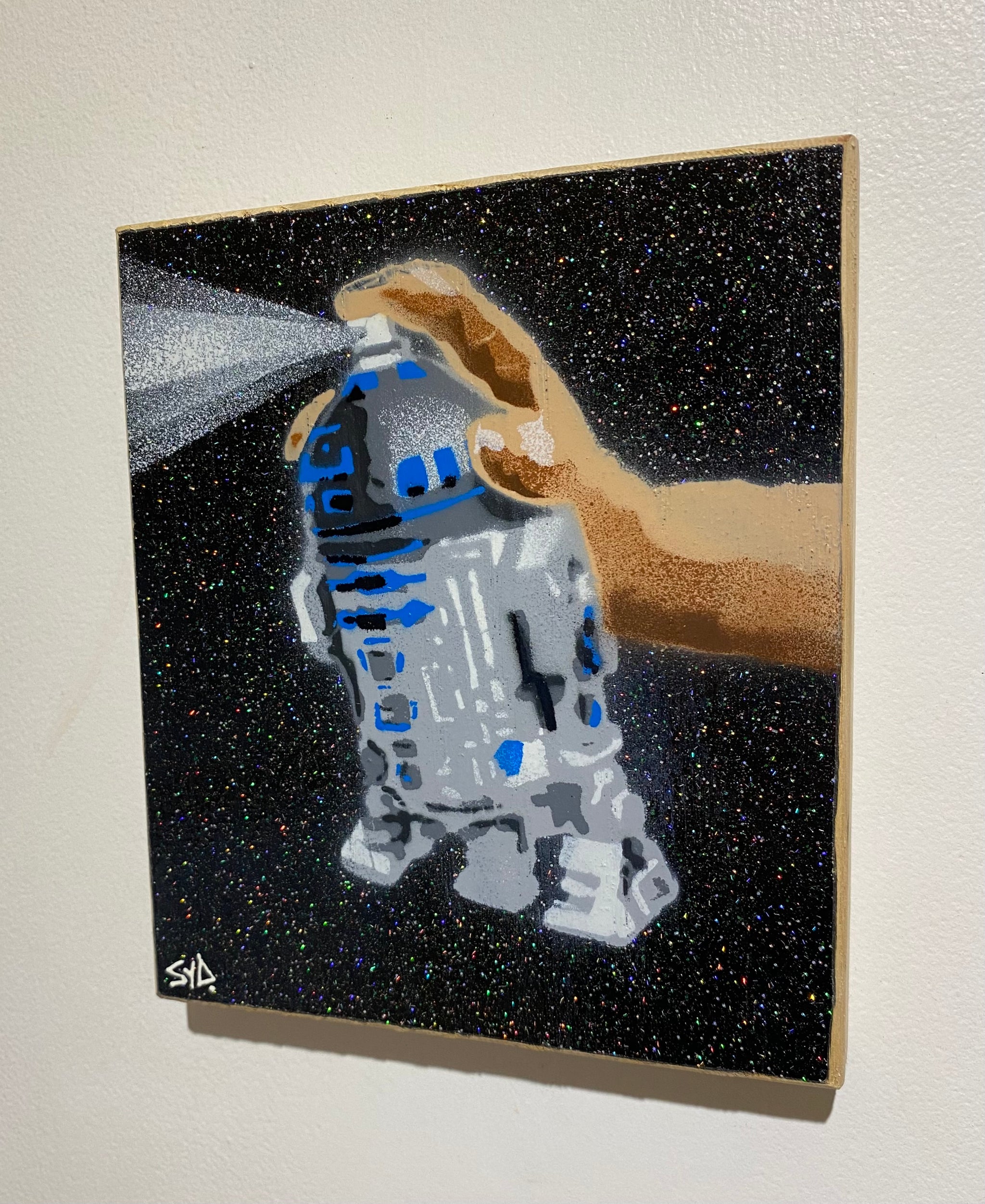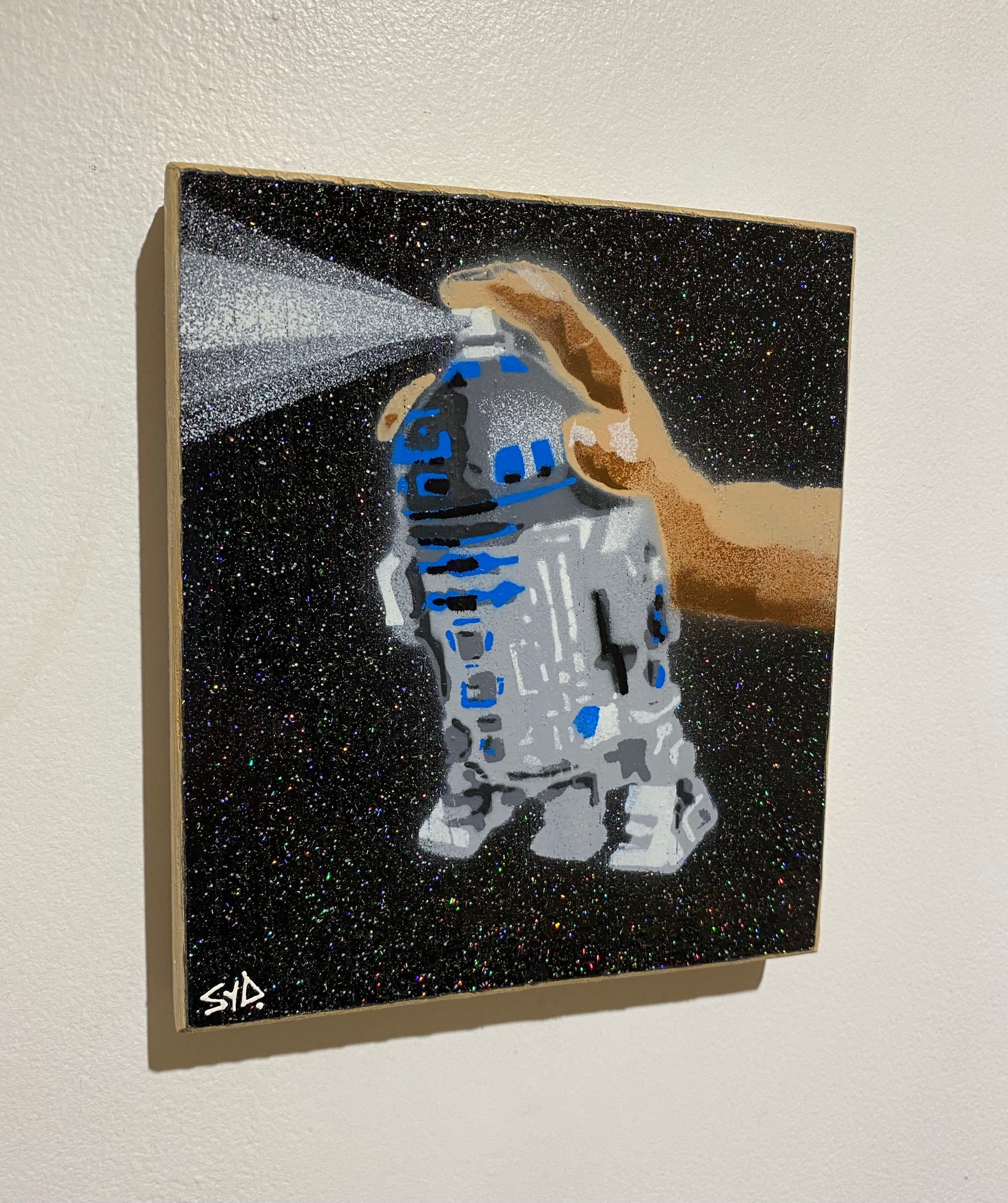 R2 Spray Can New 'Sparkle Edition' on English Oak - Very popular piece - size 15 x 18cm - Number 2