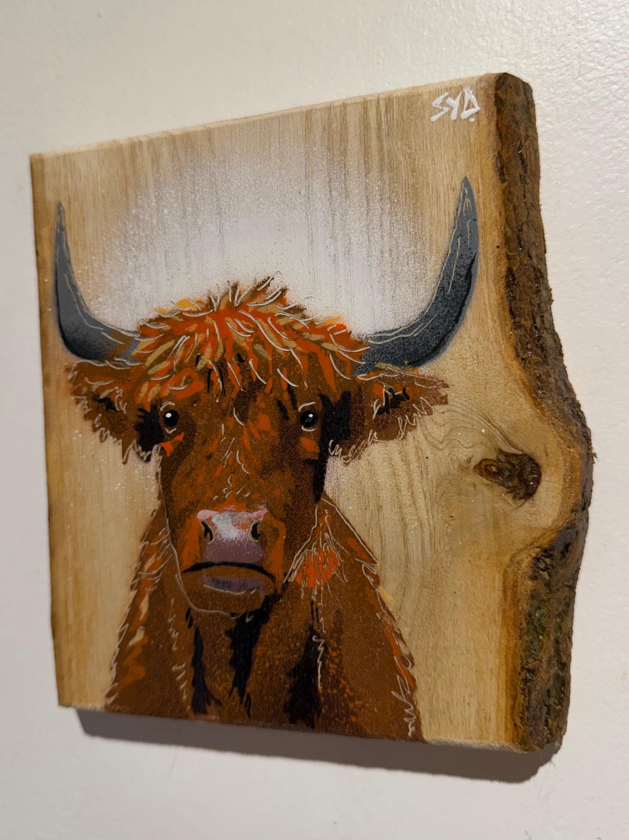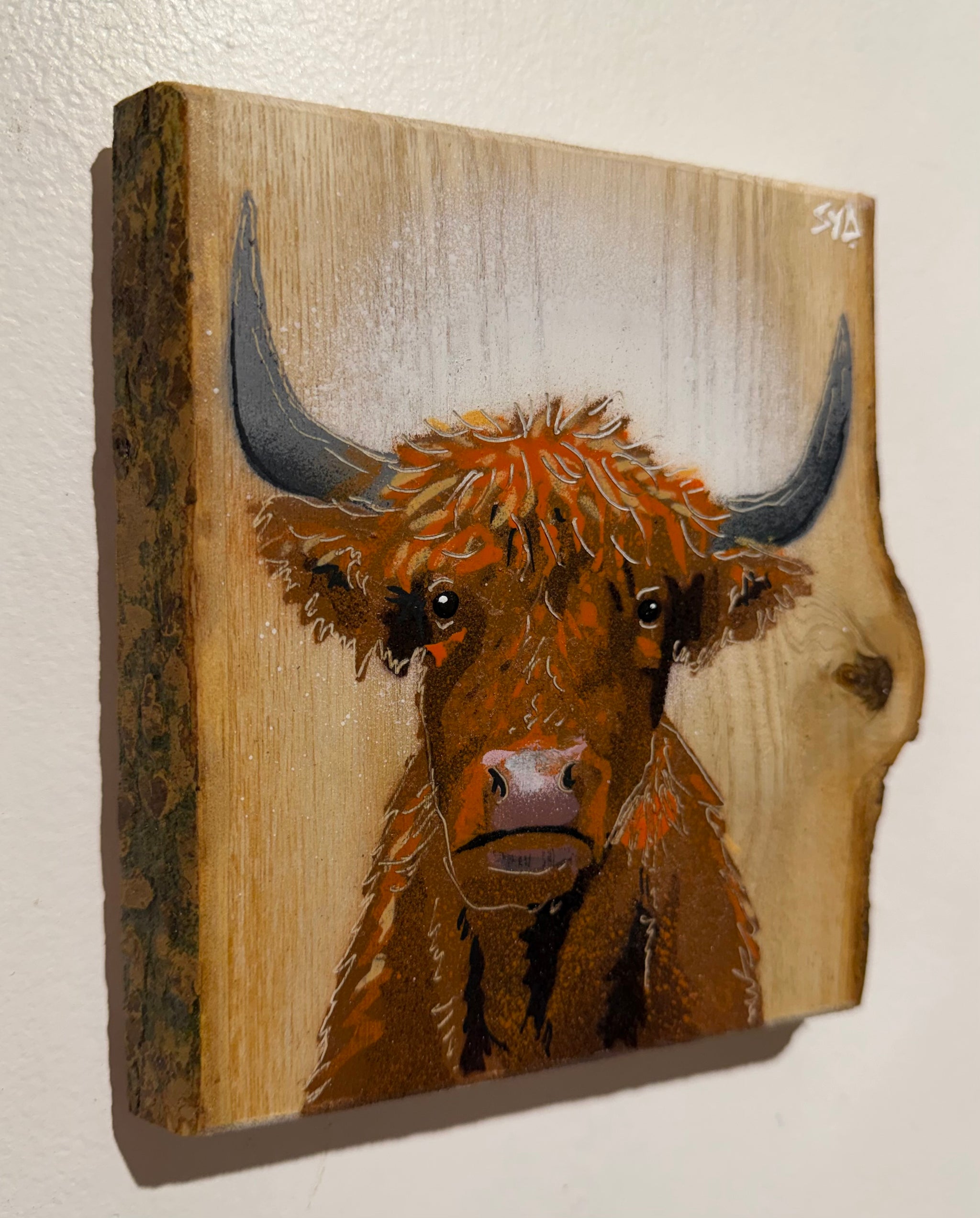 Highland Cow 2026 Barky Ash Wood - Signed Limited Edition Artwork - size 20 x 18cm - Numbers 2 to 5