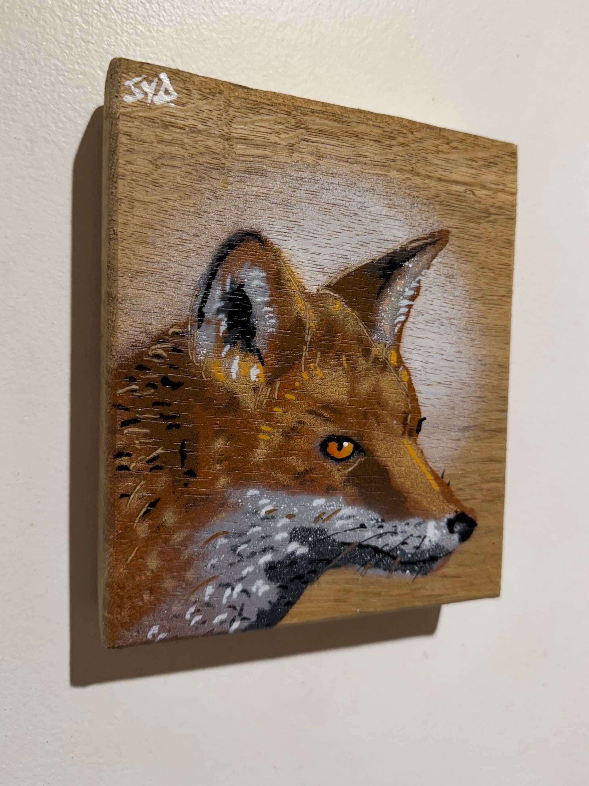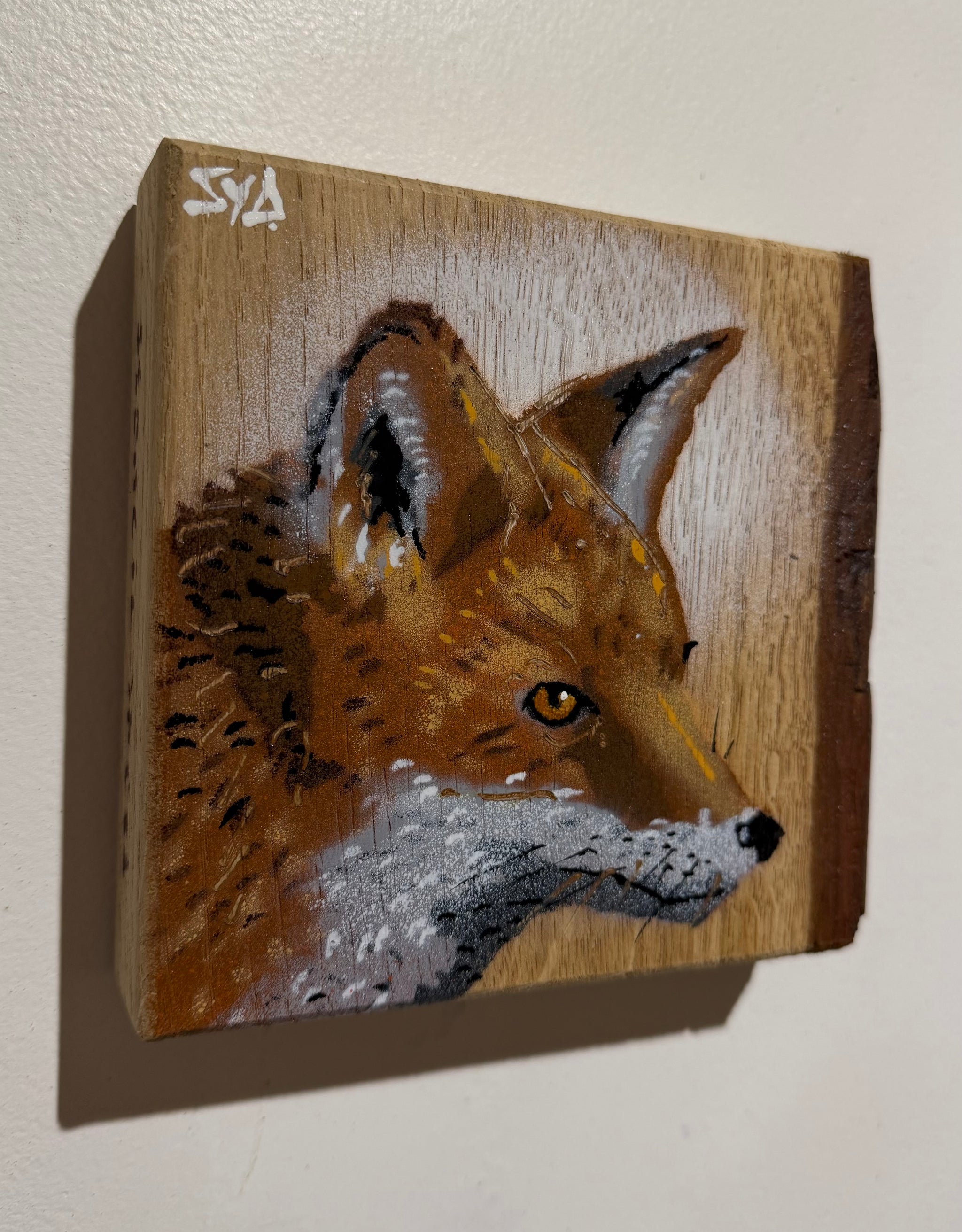 Fox 'Alert' on chunky Oak wood - Size 13 x 16cm - Artwork No. 51 from Limited Signed Edition