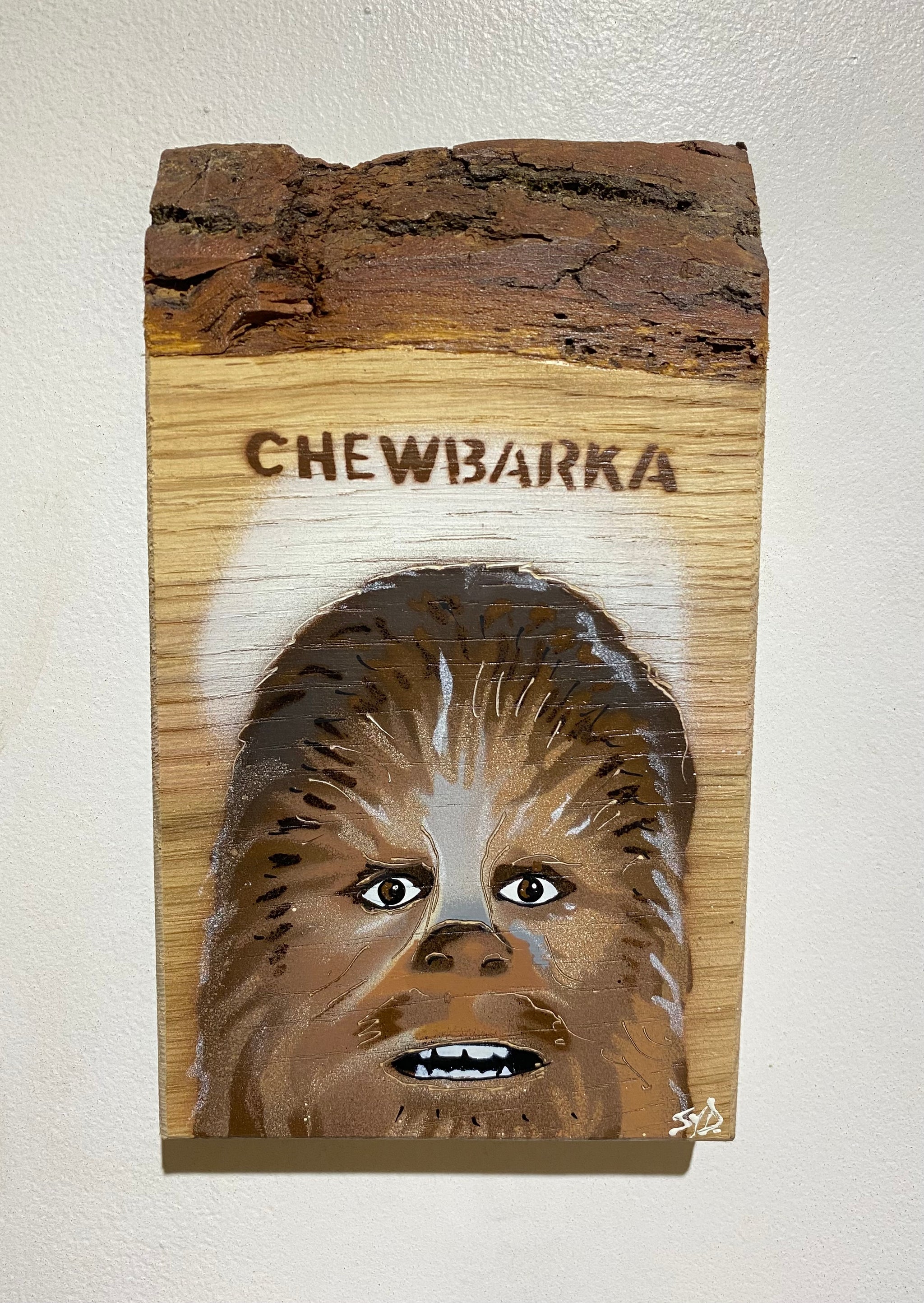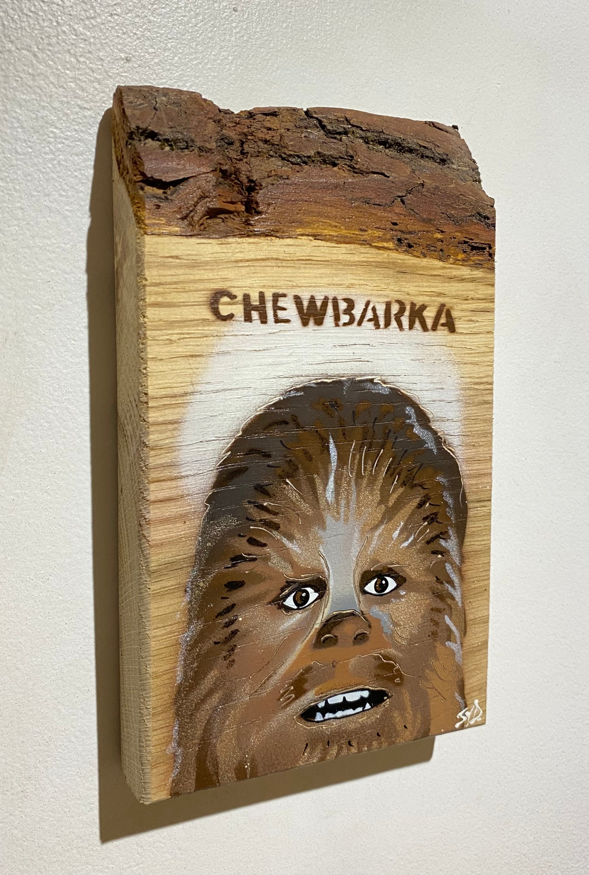 'Chewbarka' New for 2025 on barky Oak wood no. 21 - artwork size 12 x 22cm - Signed Limited Edition