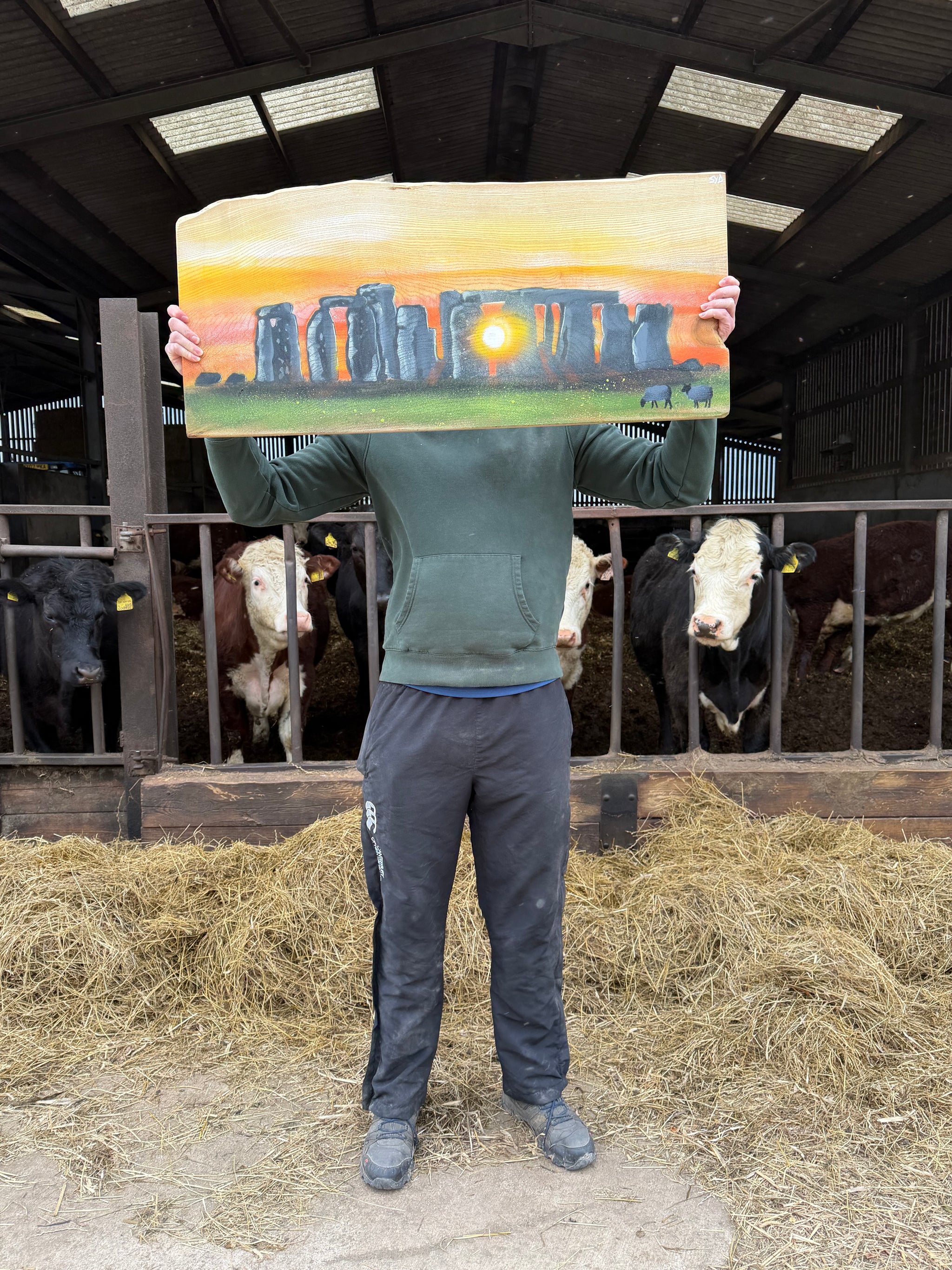 Stonehenge artwork on rare Elm wood - Stunning Artwork - signed limited edition - 118 x 45cm