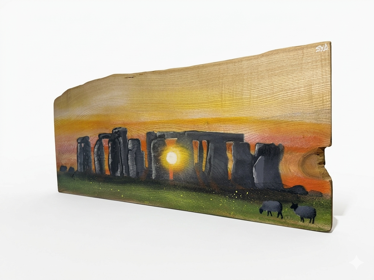 Stonehenge artwork on wide Ash wood - Stunning Artwork - signed limited edition - 100 x 43cm
