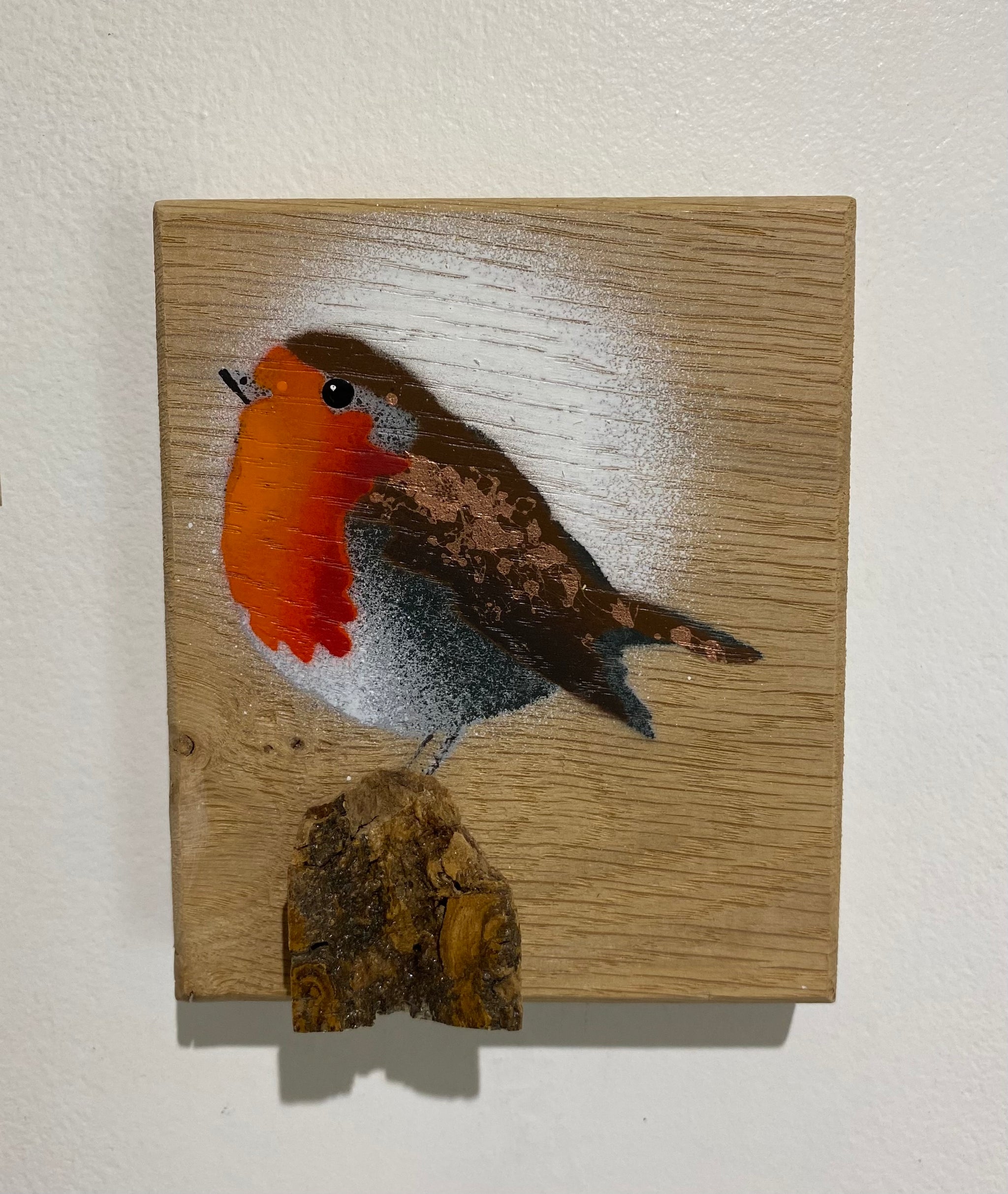 Still Worthy Cow - New for Christmas 2025 - Signed limited edition Number 2 spray painted art on Oak wood - size 18 x 20cm