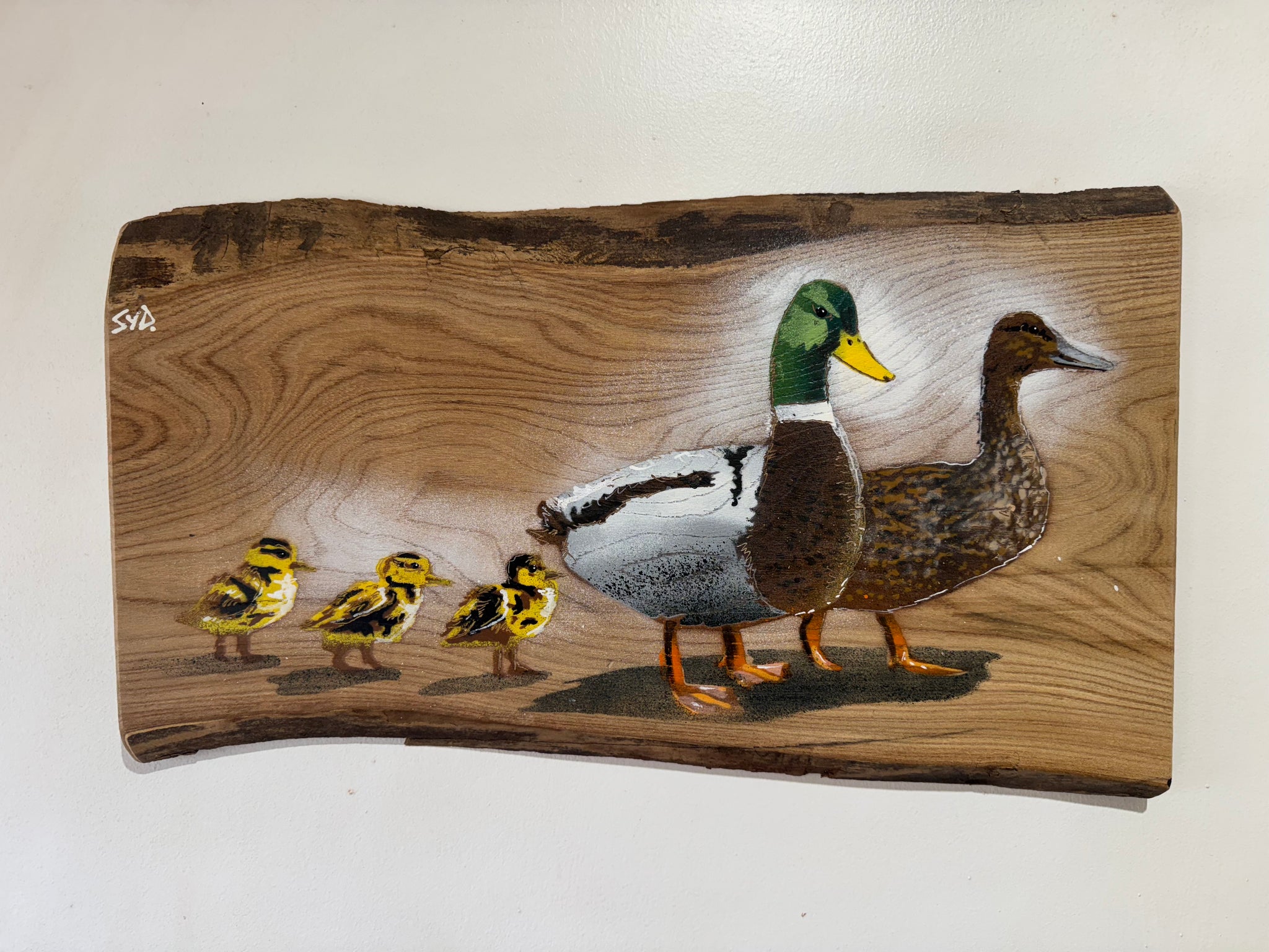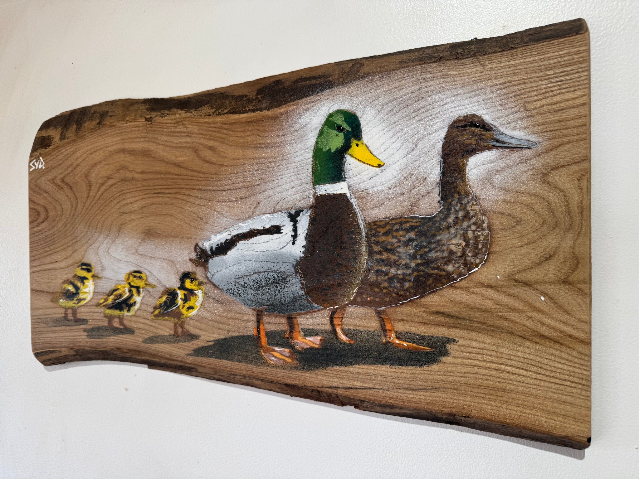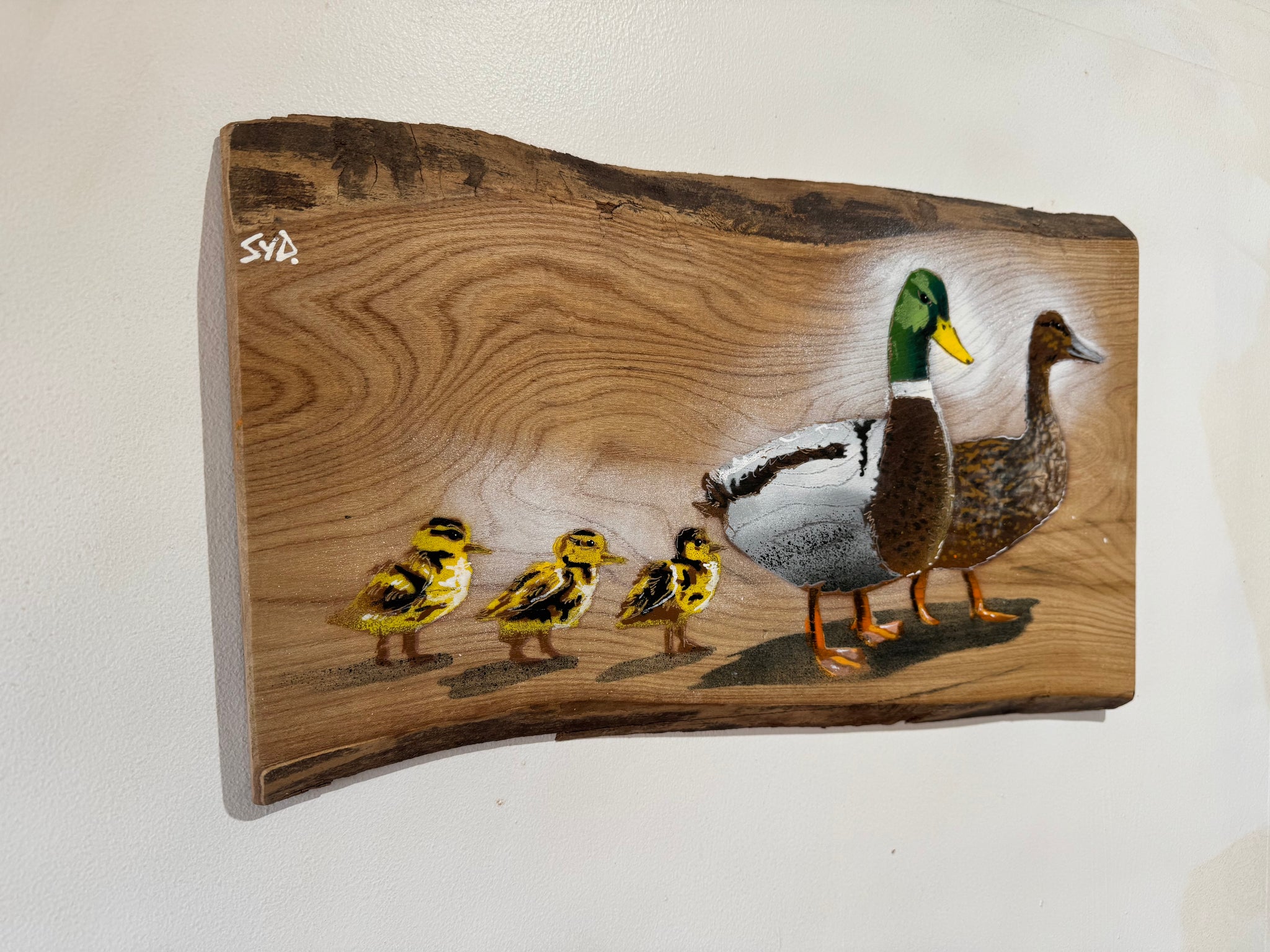 Family Quackers on Elm wood - approx size 50 x 36cm - Signed Limited edition artwork