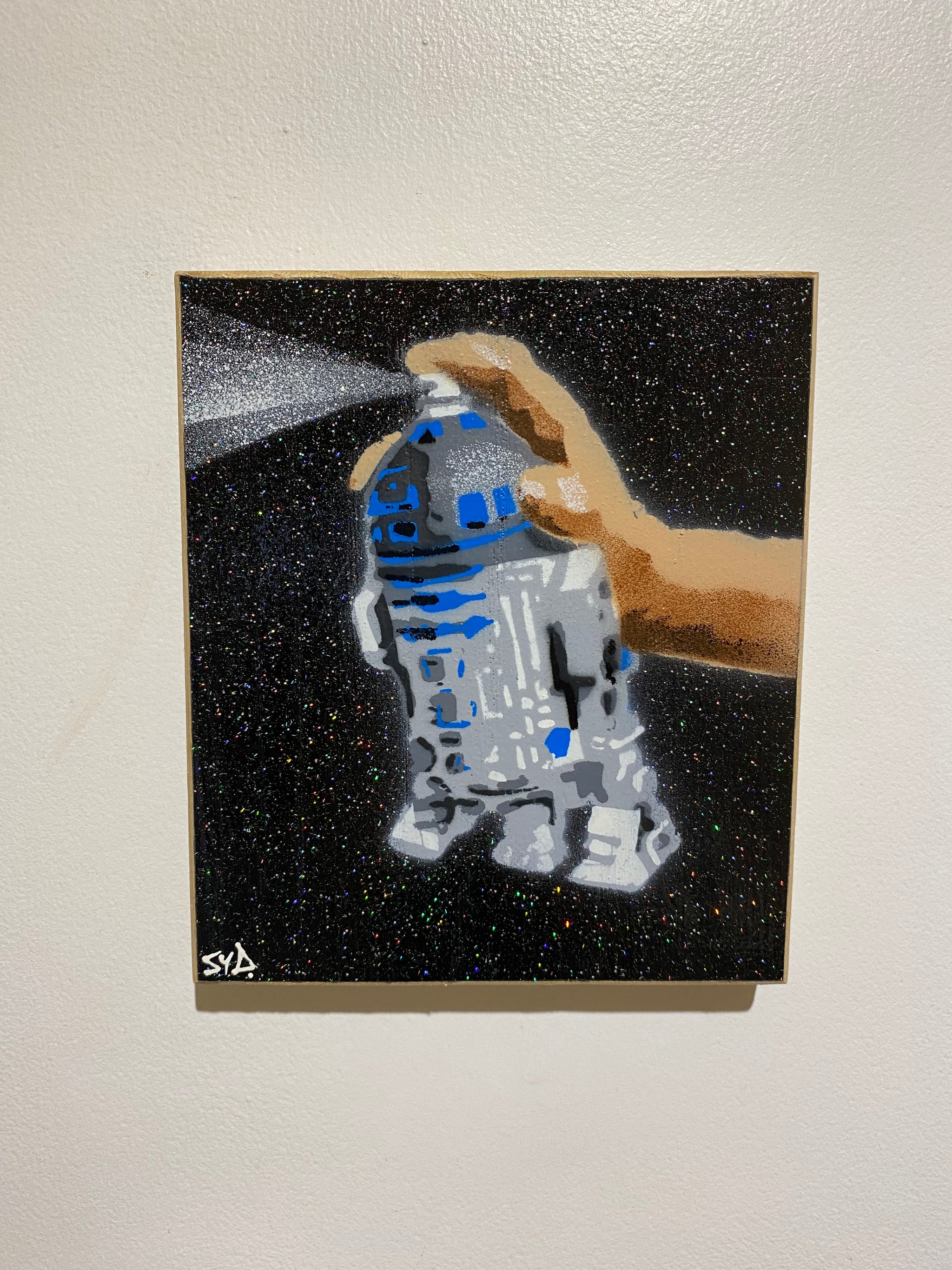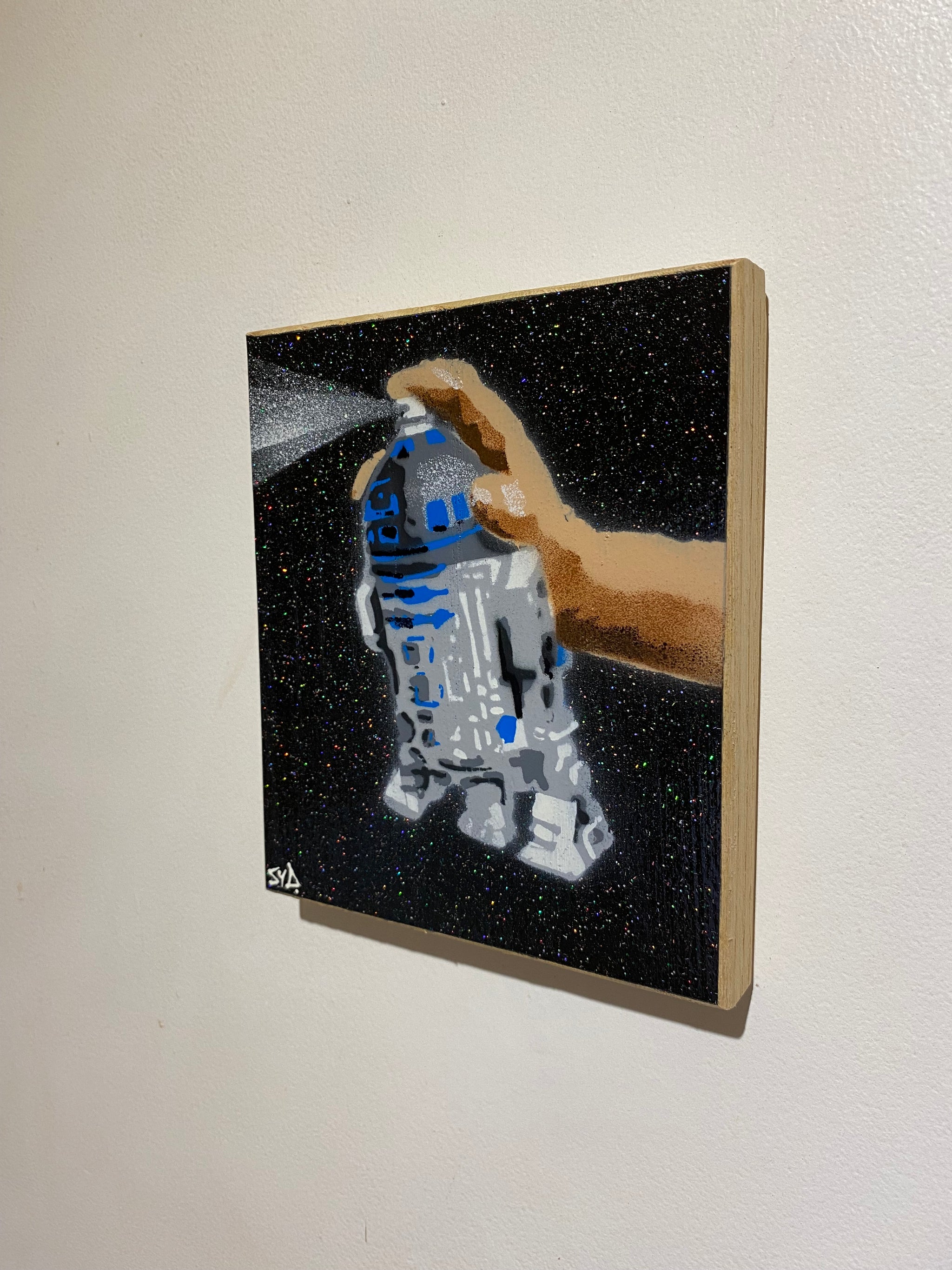 R2 Spray Can New 'Sparkle Edition' on English Oak - Very popular piece - size 15 x 18cm - Number 2