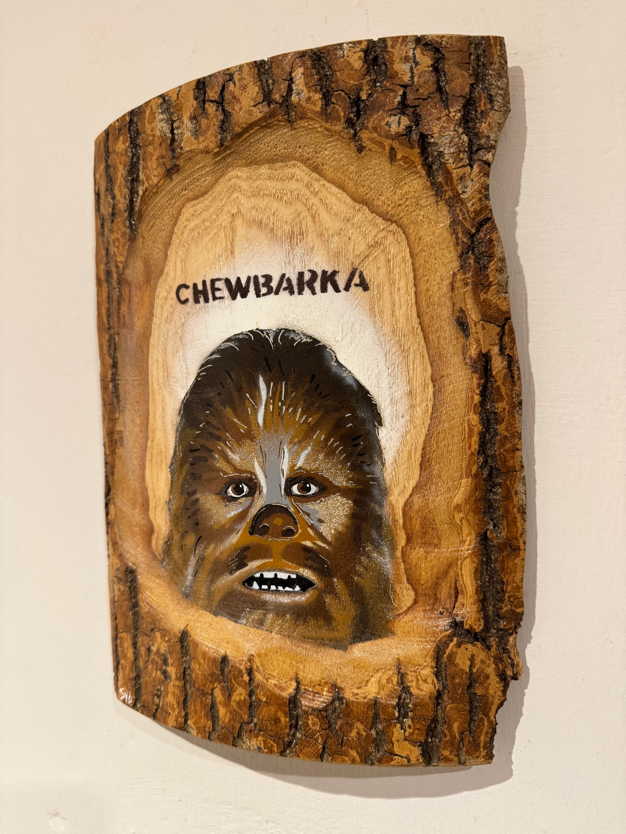 'Chewbarka' New for 2025 on barky Ash wood no. 30 artwork size 12 x 24cm - Signed Limited Edition