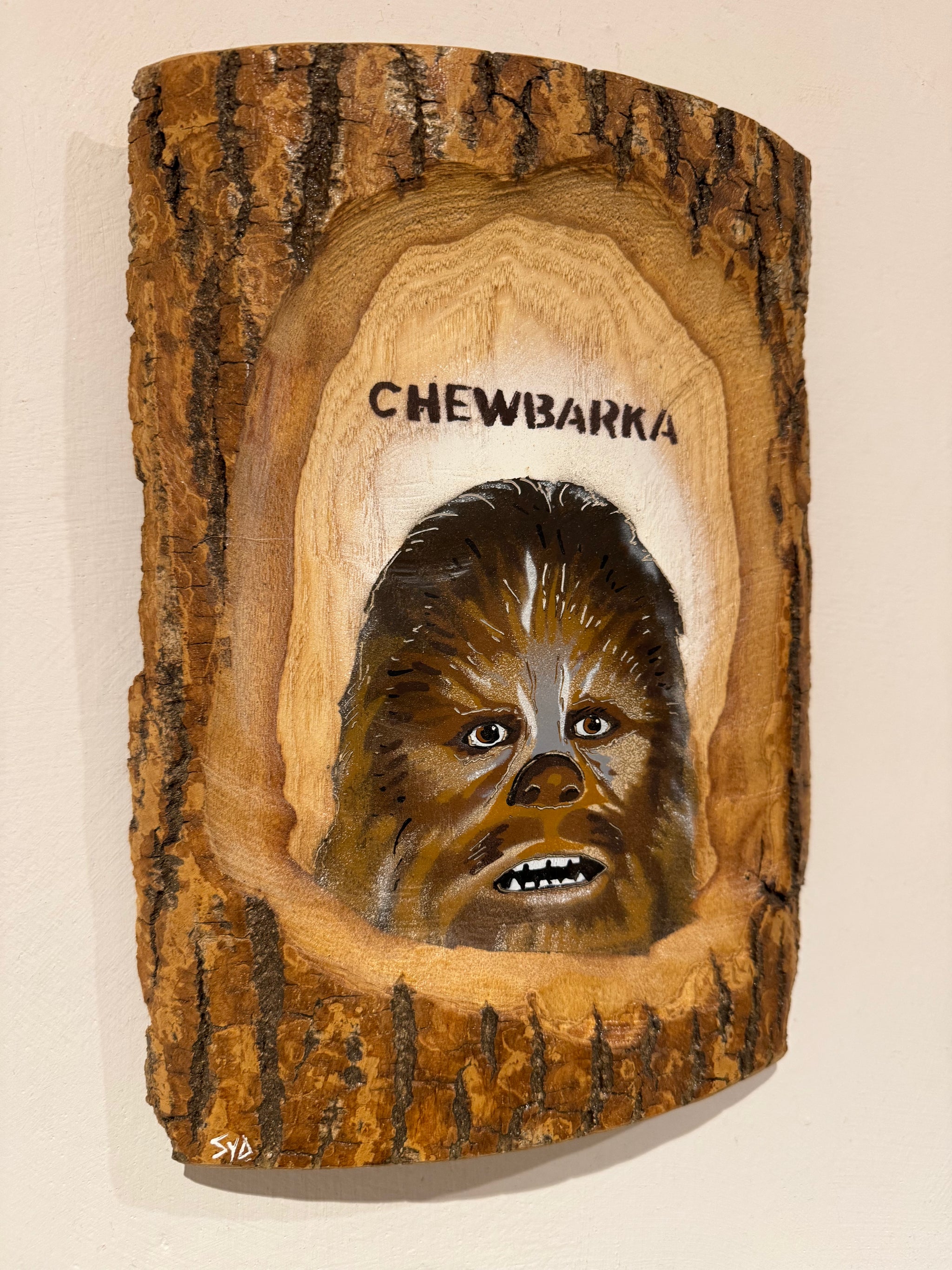 'Chewbarka' ‘no 1 in the edition’ - New for 2025 on barky ash wood - artwork size 27 x 20cm