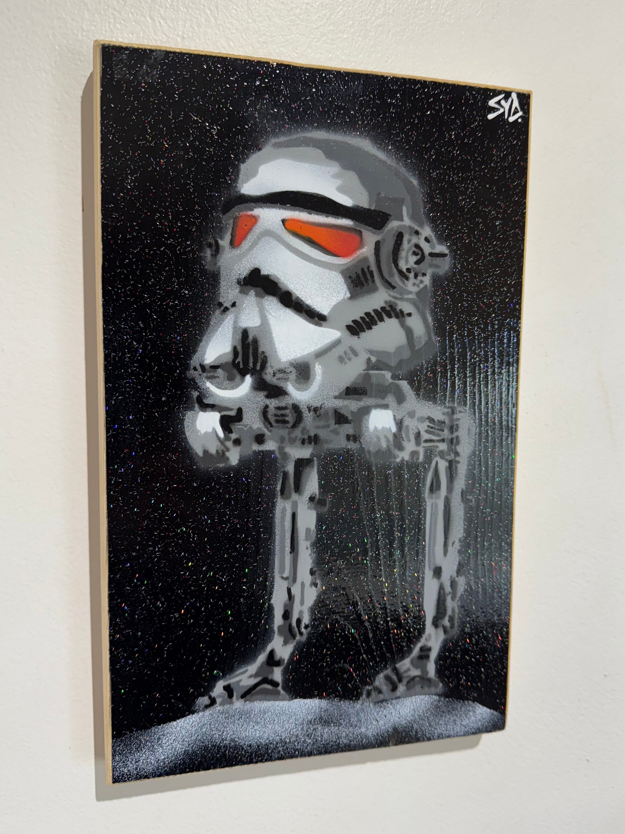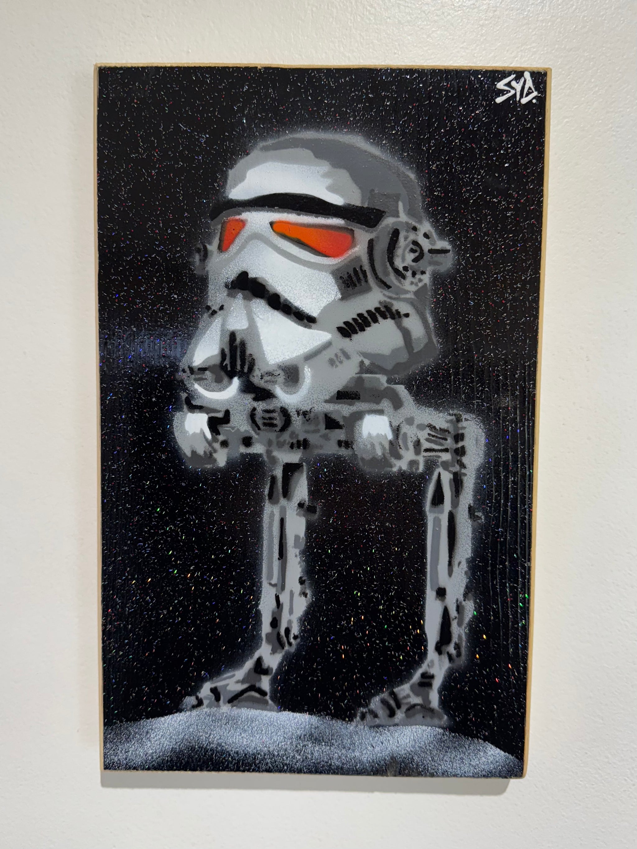 A selection of handmade limited edition artworks exclusive to the stencil shed. All made by Syd. Fan art from science fiction series, but with a twist!
