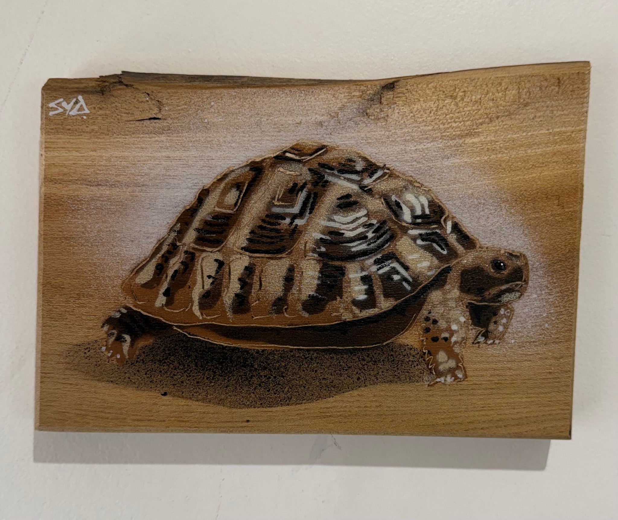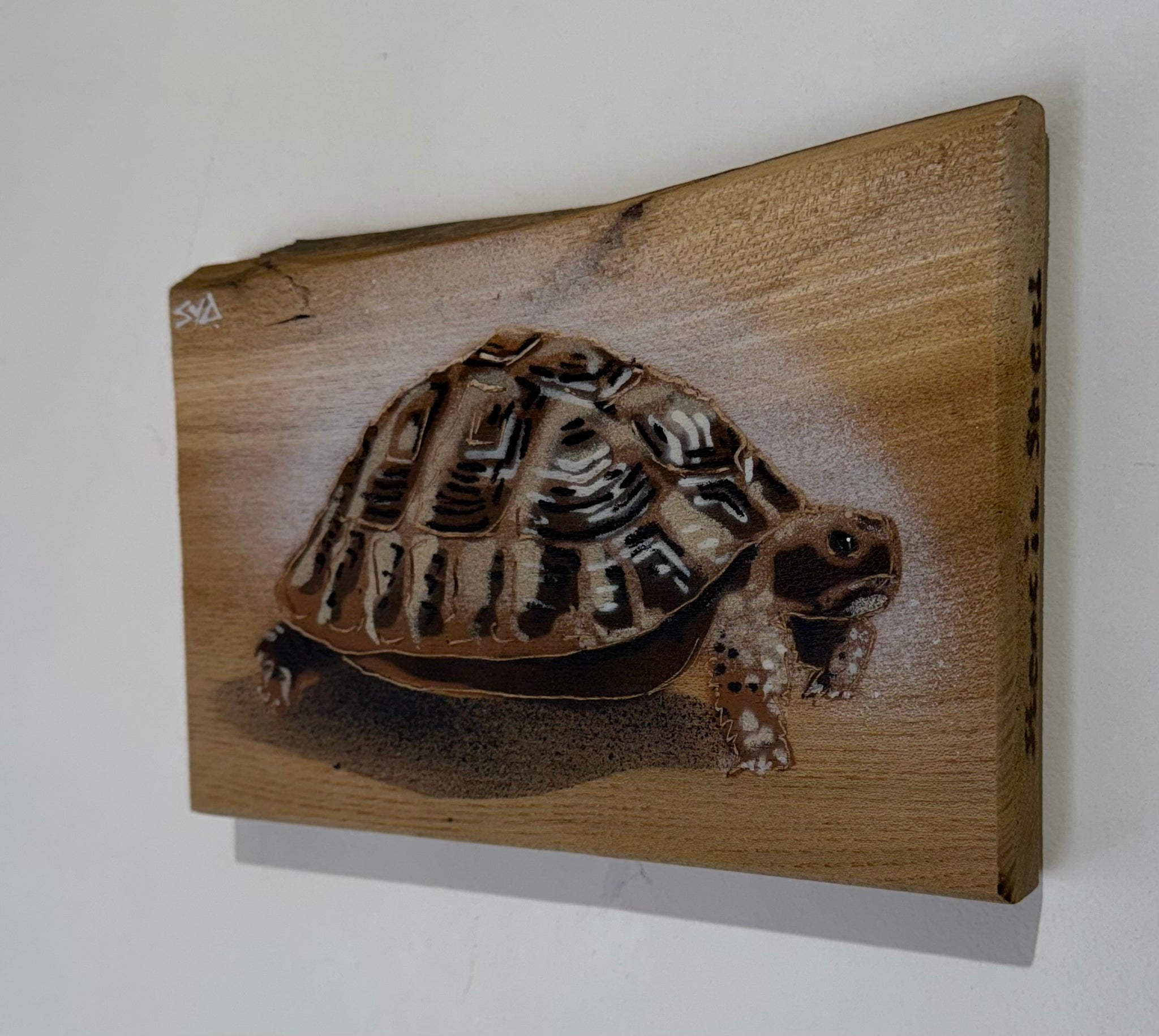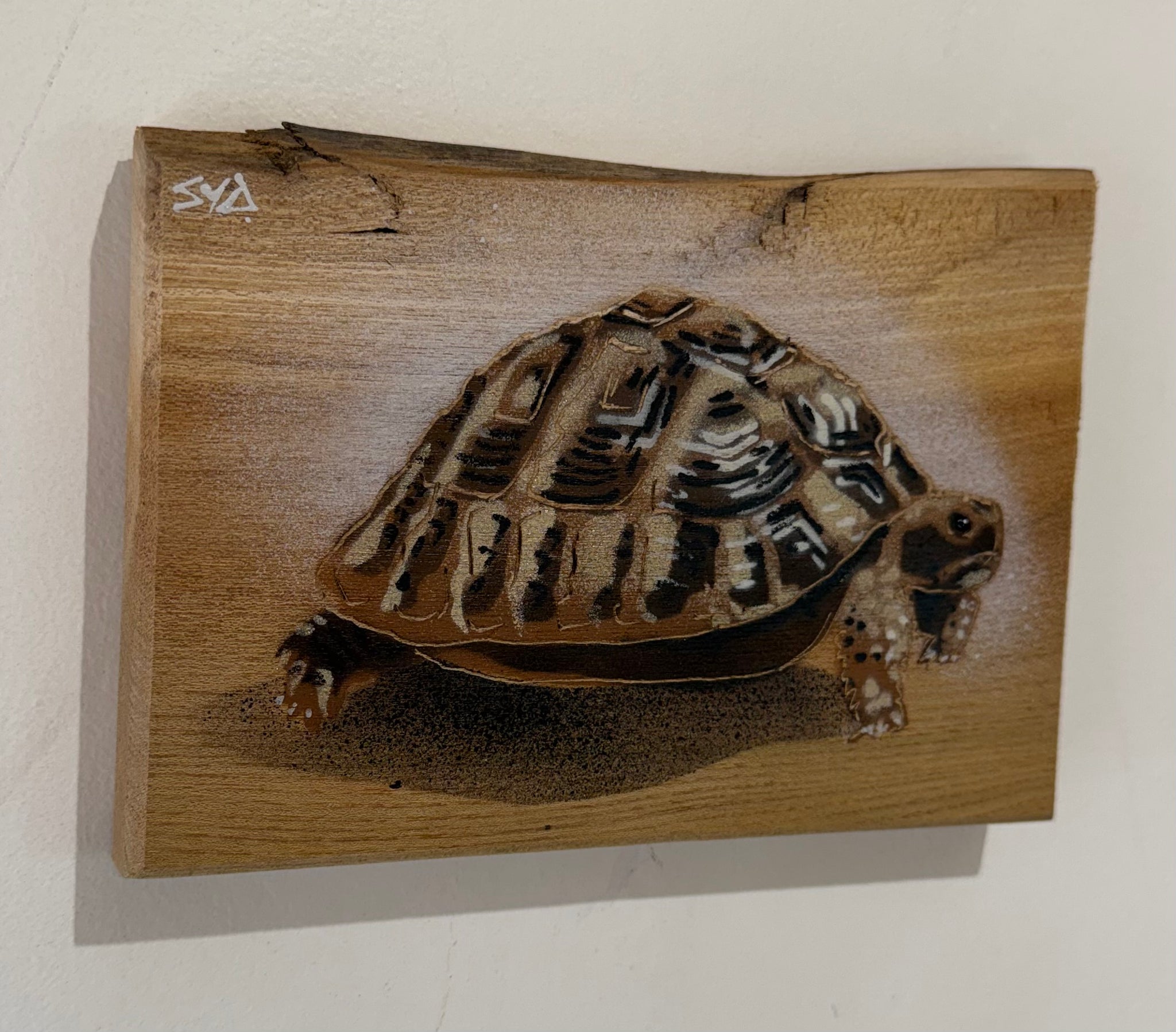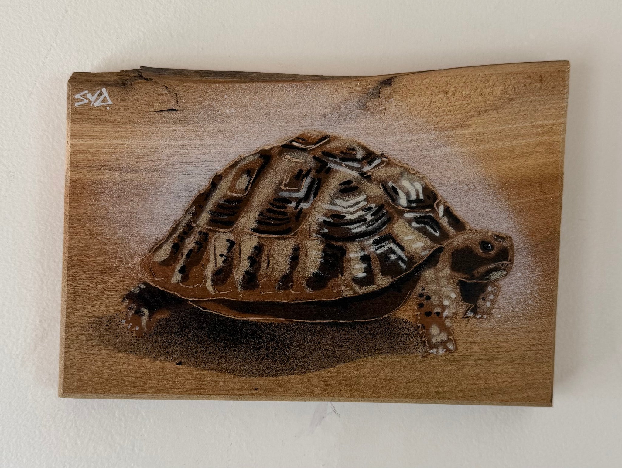 ‘Shelby!’ Tortoise - One of my favourite creatures to stencil. 7 layers subtly blending tones of greys, browns, creams and a skim of gold to...