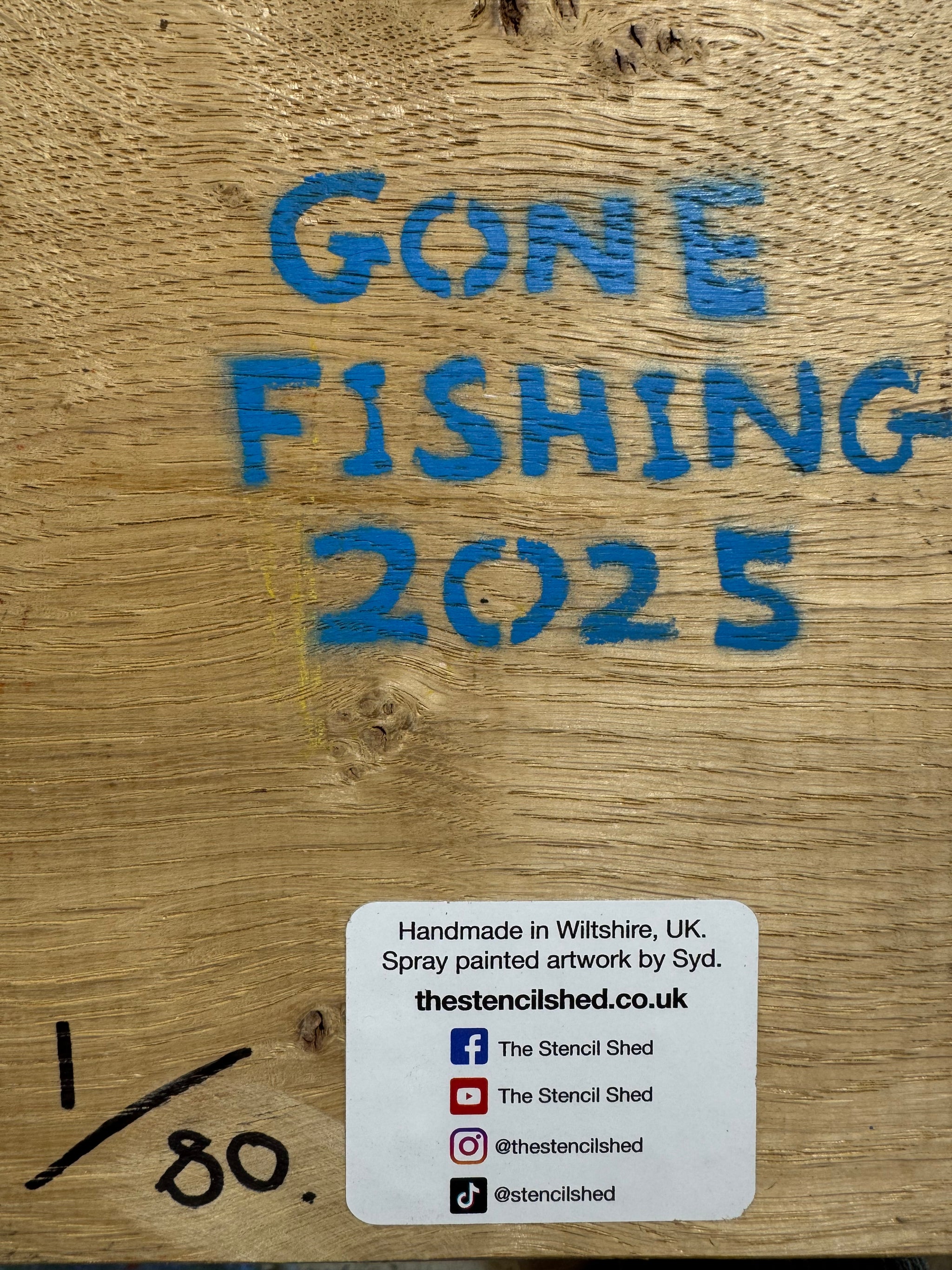 This particular artwork is number 1 and you will receive exactly what you see in the photo. Artwork name 'Gone Fishing' dated and named on the reverse and ready to hang. All the wood is sustainably sourced from the UK.